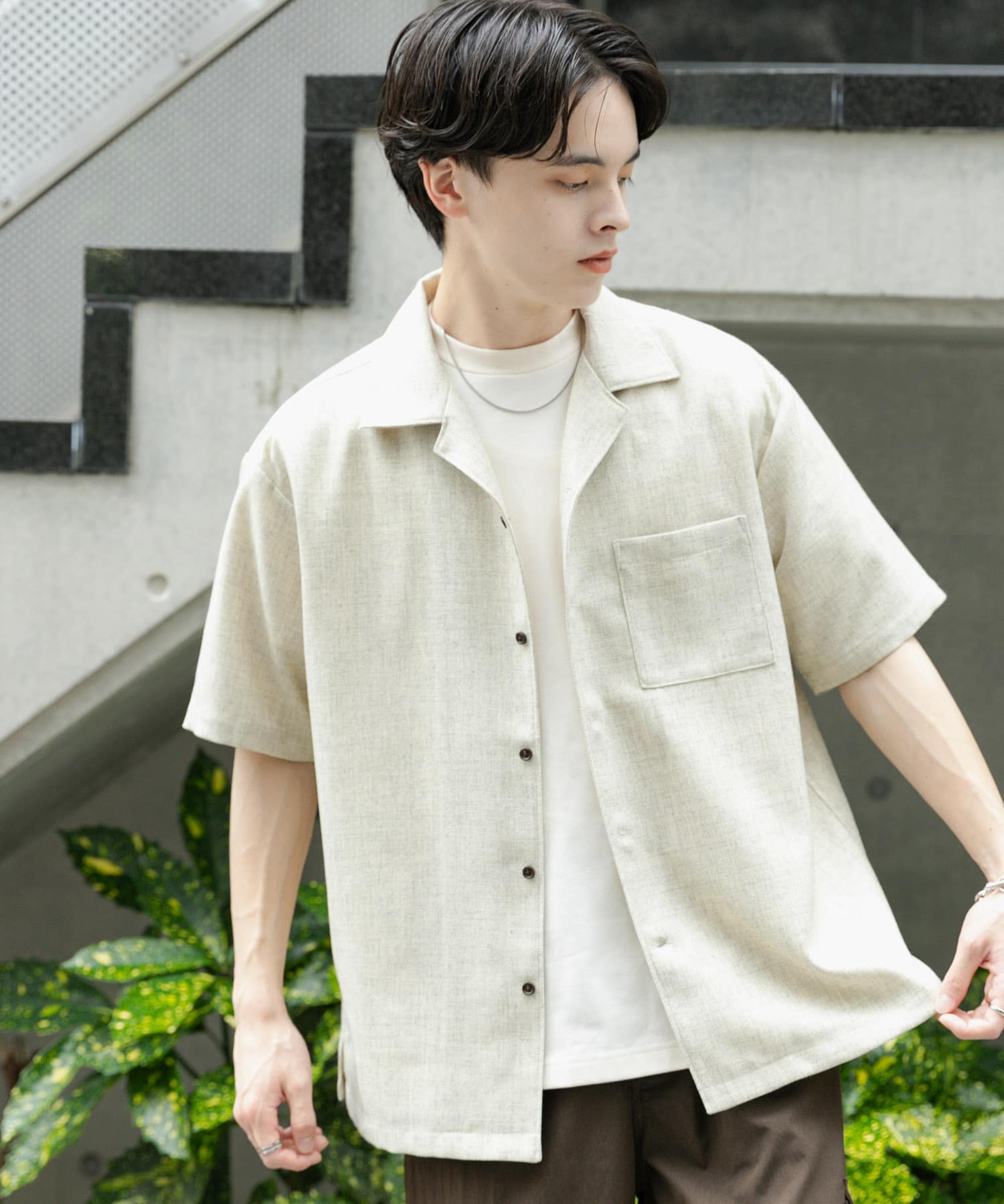 メランジプリペラオープンカラーショートスリーブシャツ