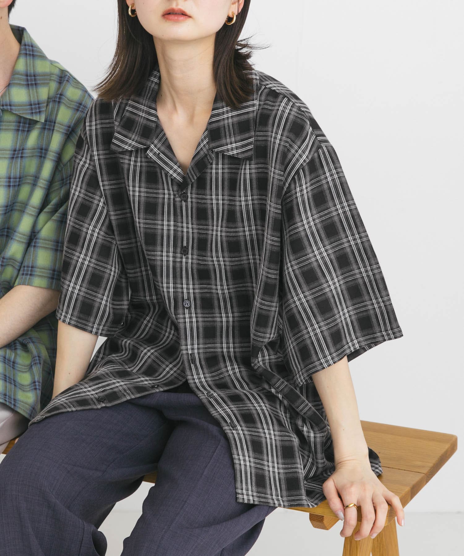 『ユニセックス』オンブレーチェックショートスリーブシャツ