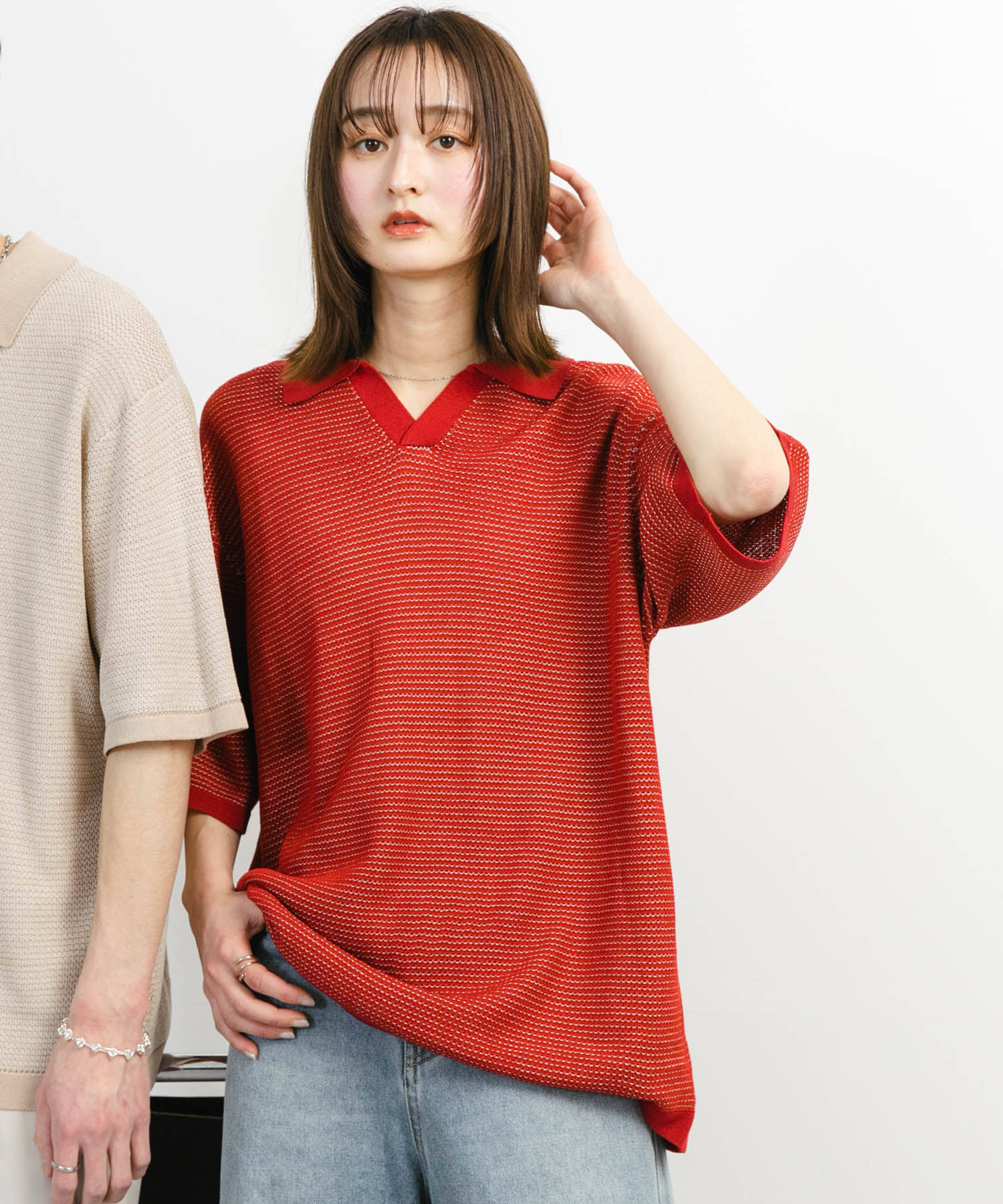 トップスはスキッパーのサマーニットポロです。