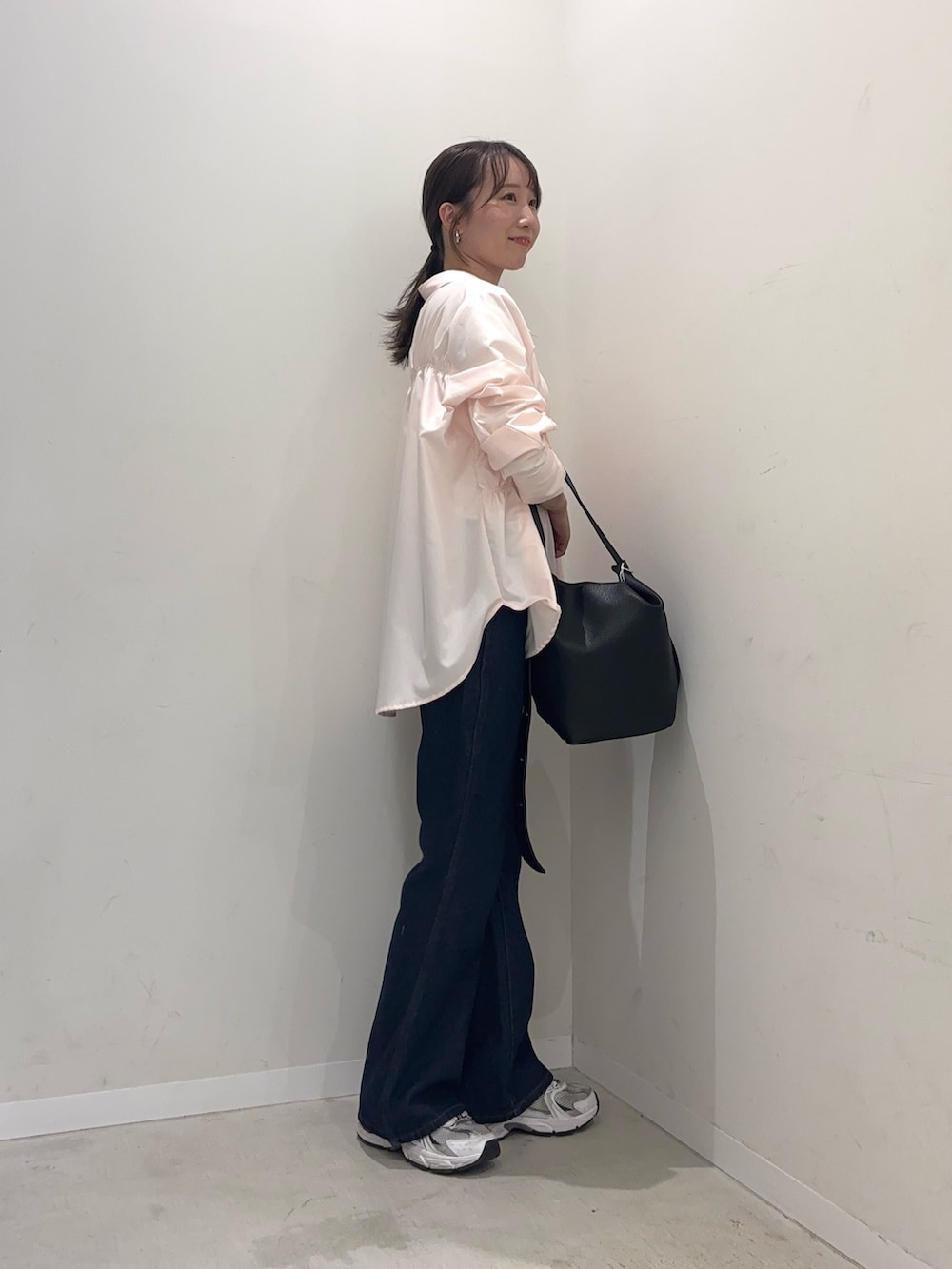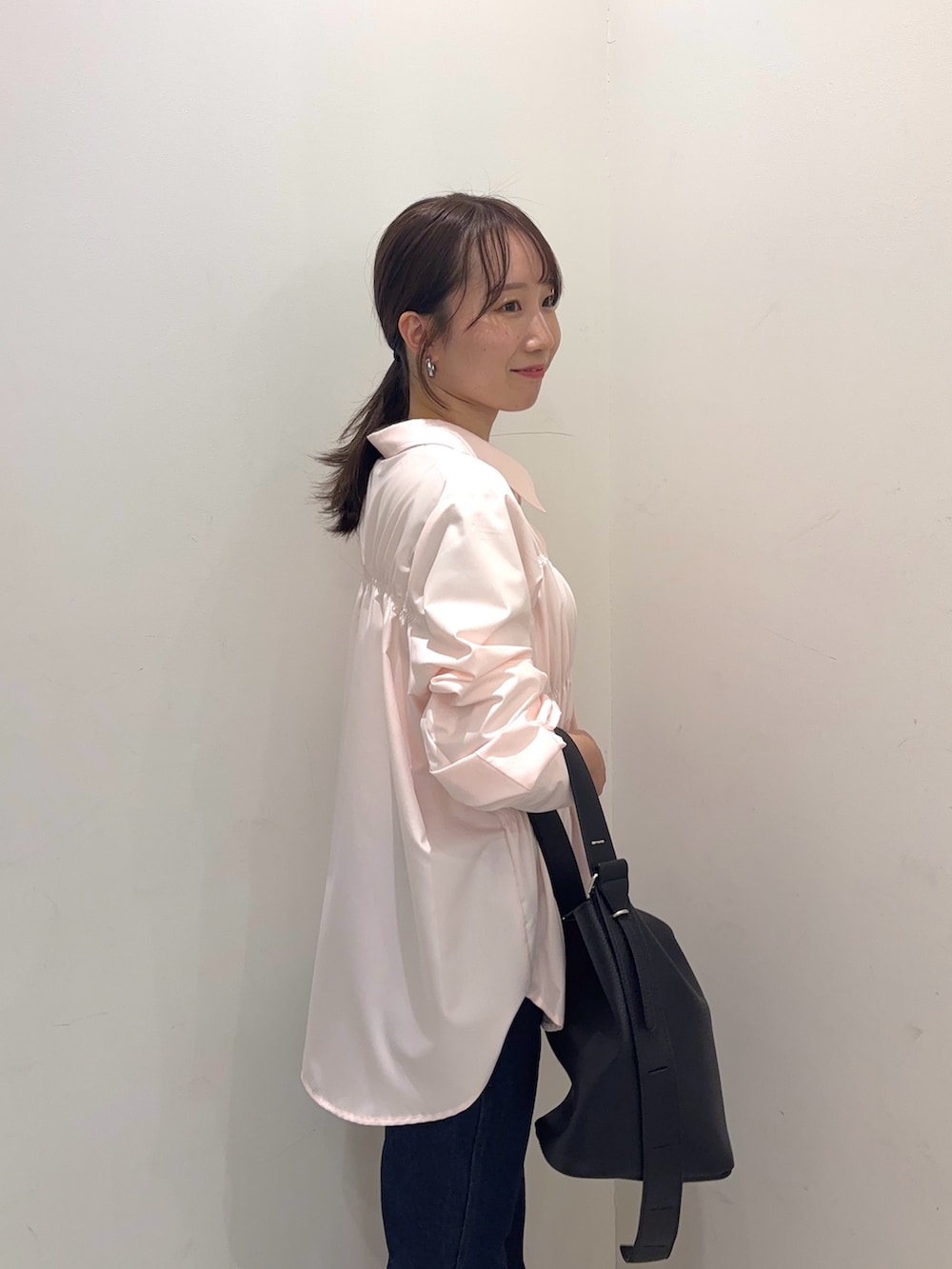 シャーリングのシャツは意外と透け感も少なく着やすさも🙆♀️