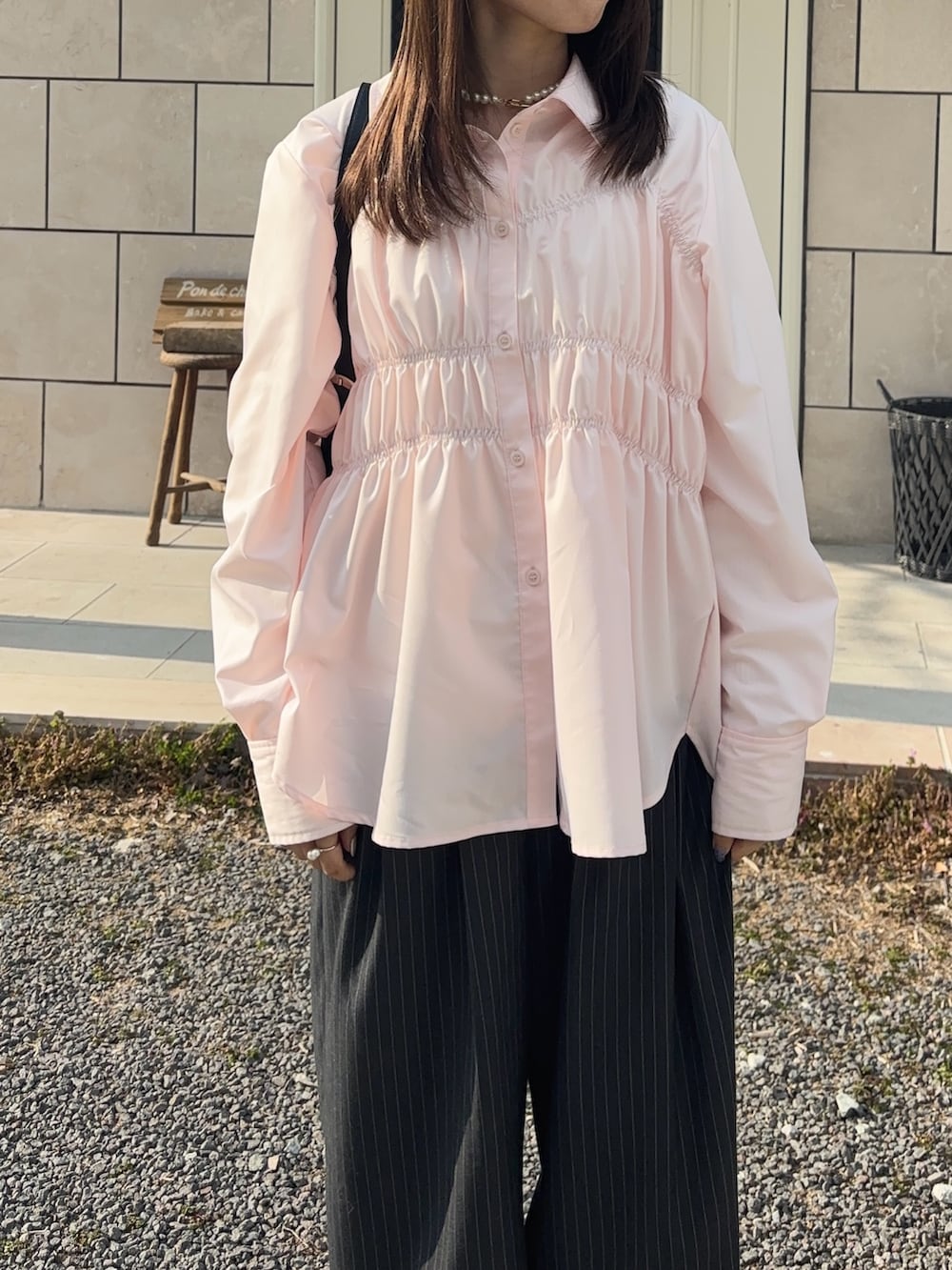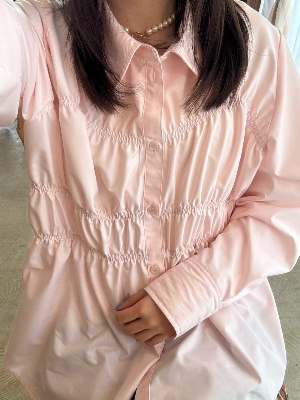 シャーリングデザインシャツ