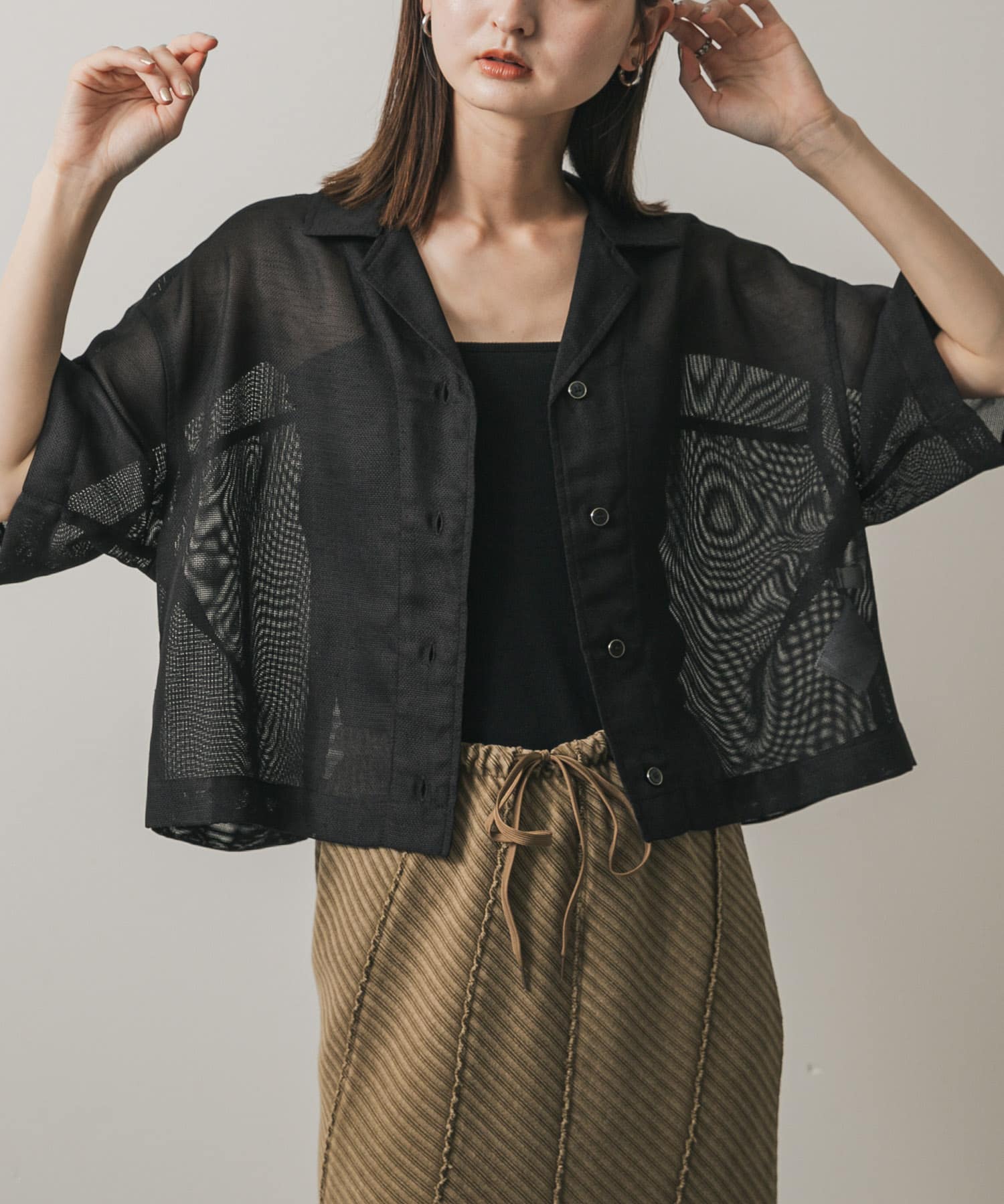 SENSE OF PLACEリネンライクメッシュシャツ- カラー: