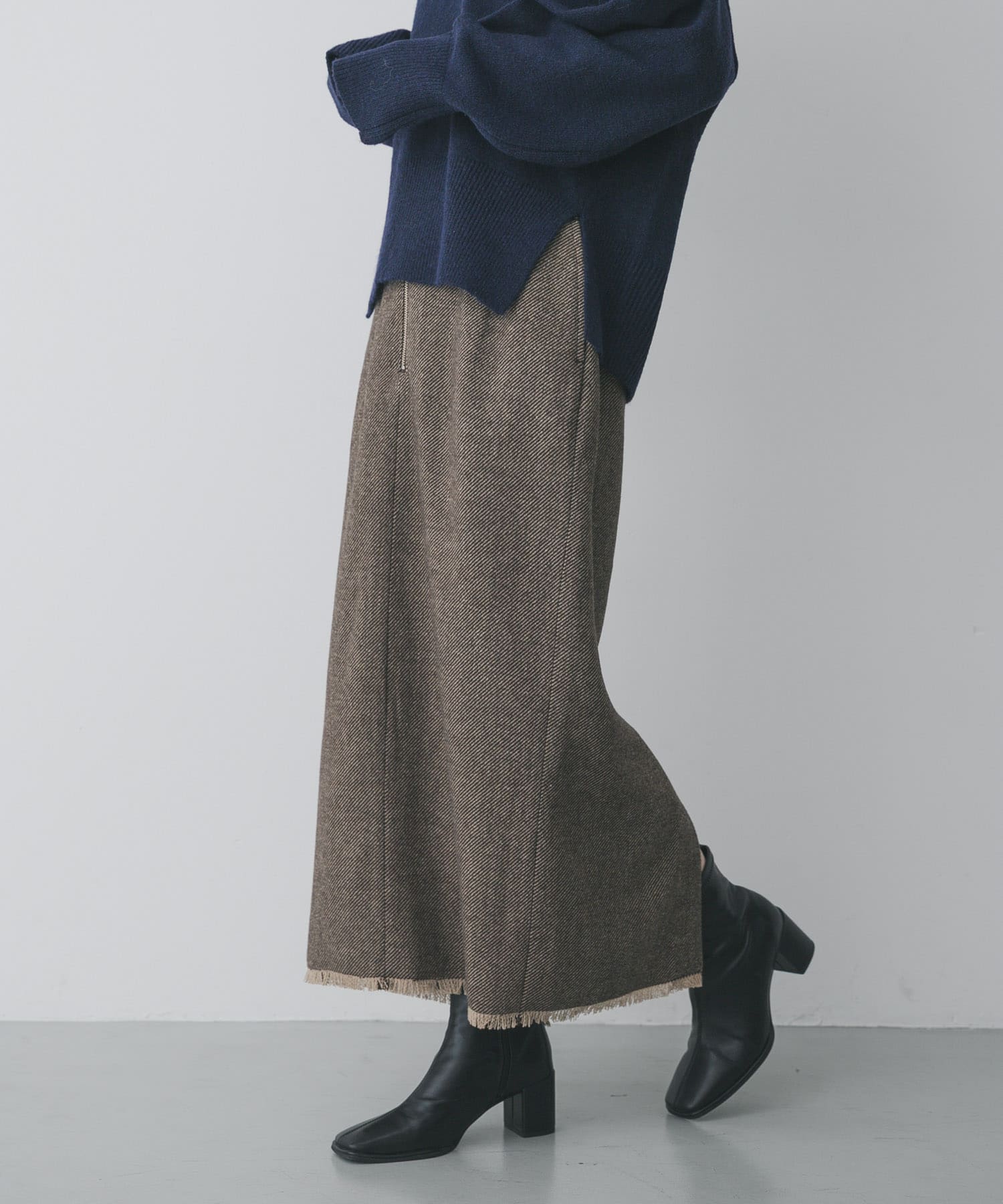 SENSE OF PLACEツイードフリンジジップスカート- カラー: