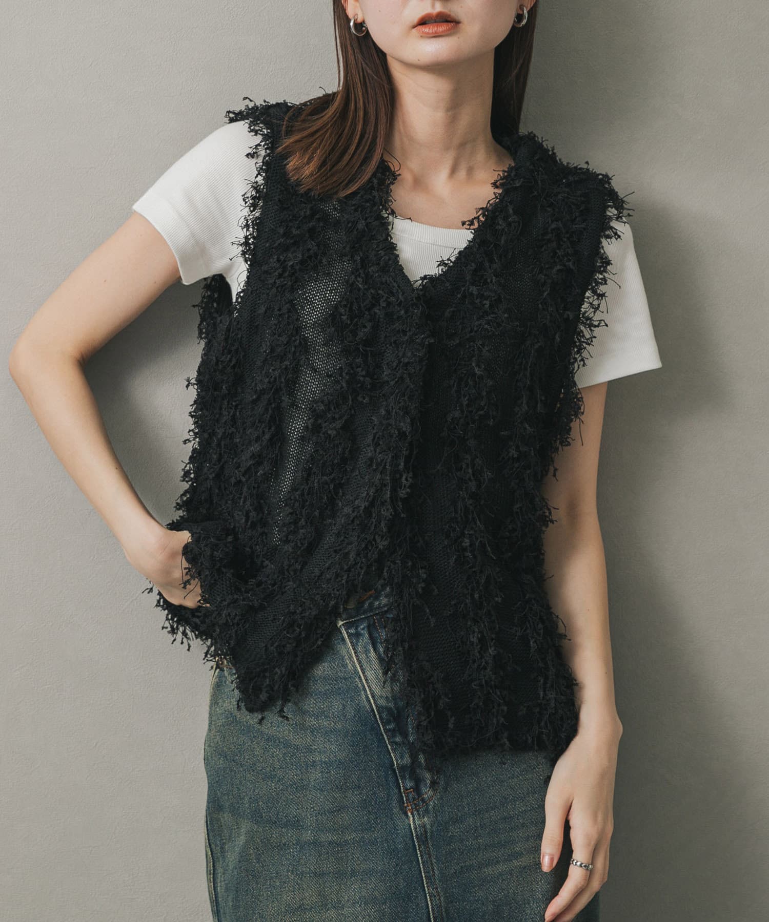 SENSE OF PLACEコードチュールフリンジベスト- カラー: