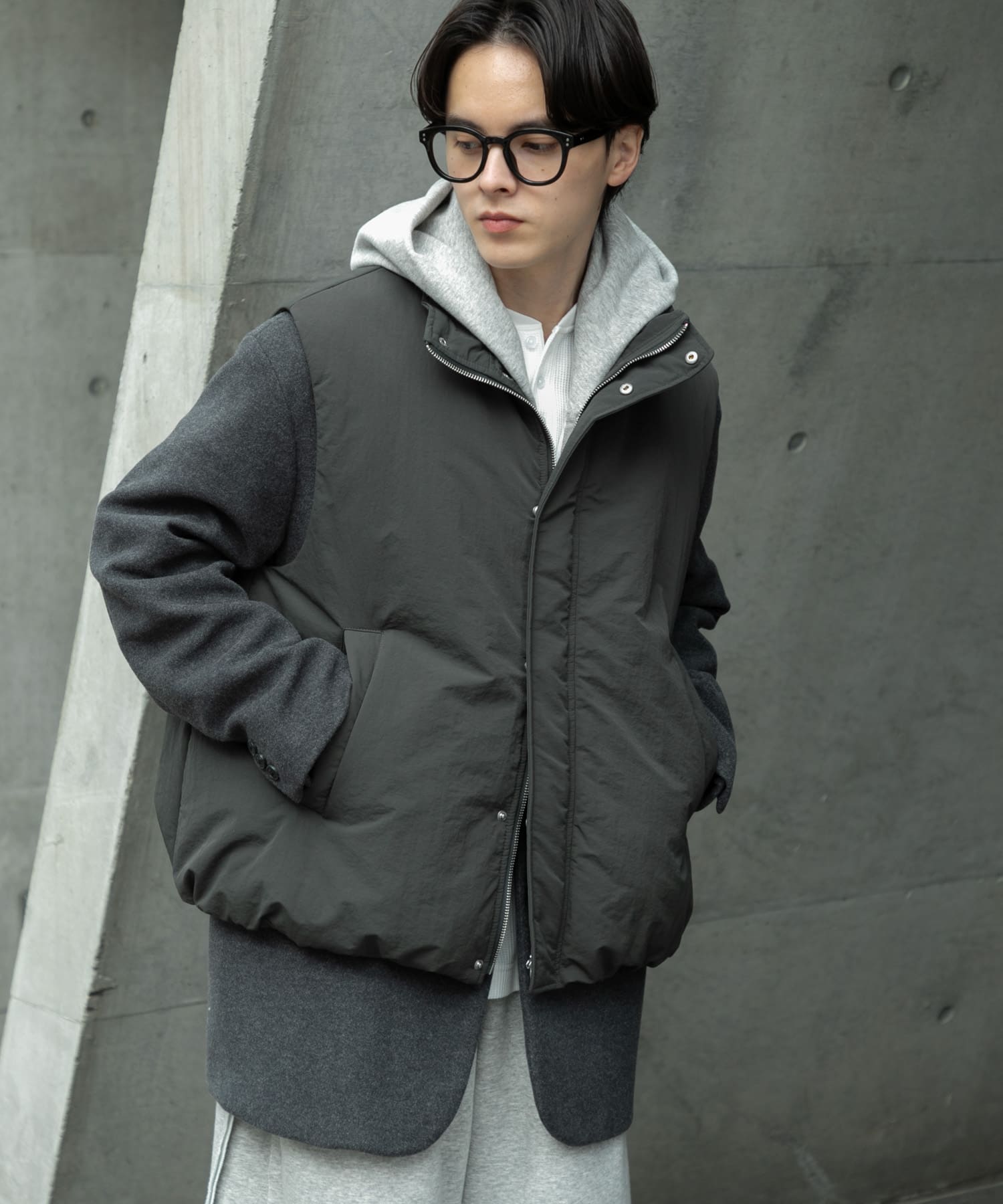 シンプルなデザインでゆったり着用可能のダウンベスト!ベストの下にはコードも入っており、シルエット変化やボリュームを抑えることも可能です‼︎