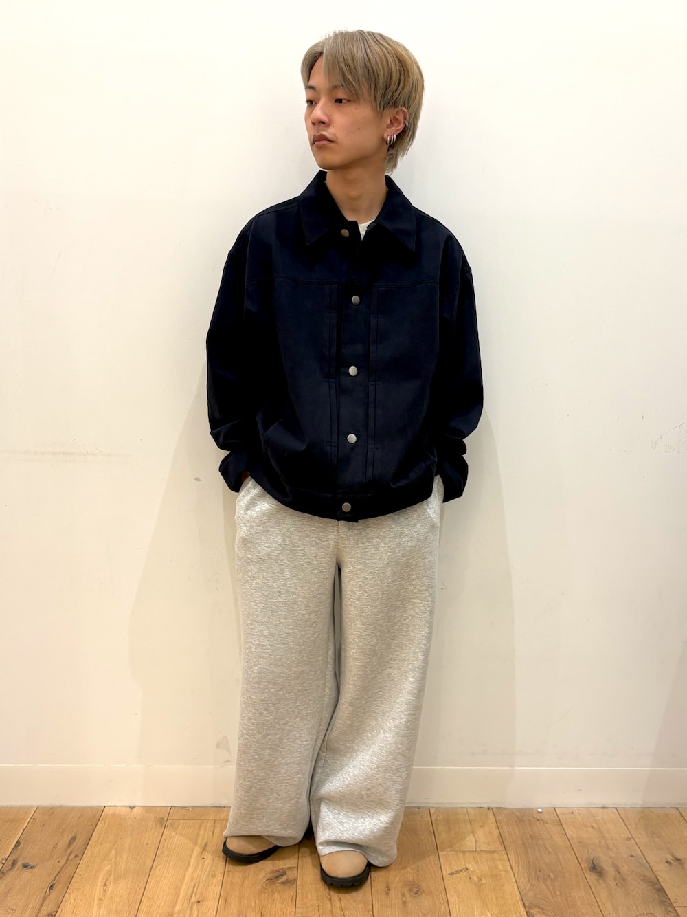 パンツには、カーゴパンツを合わせて、カジュアルなスタイリングに仕上げました。