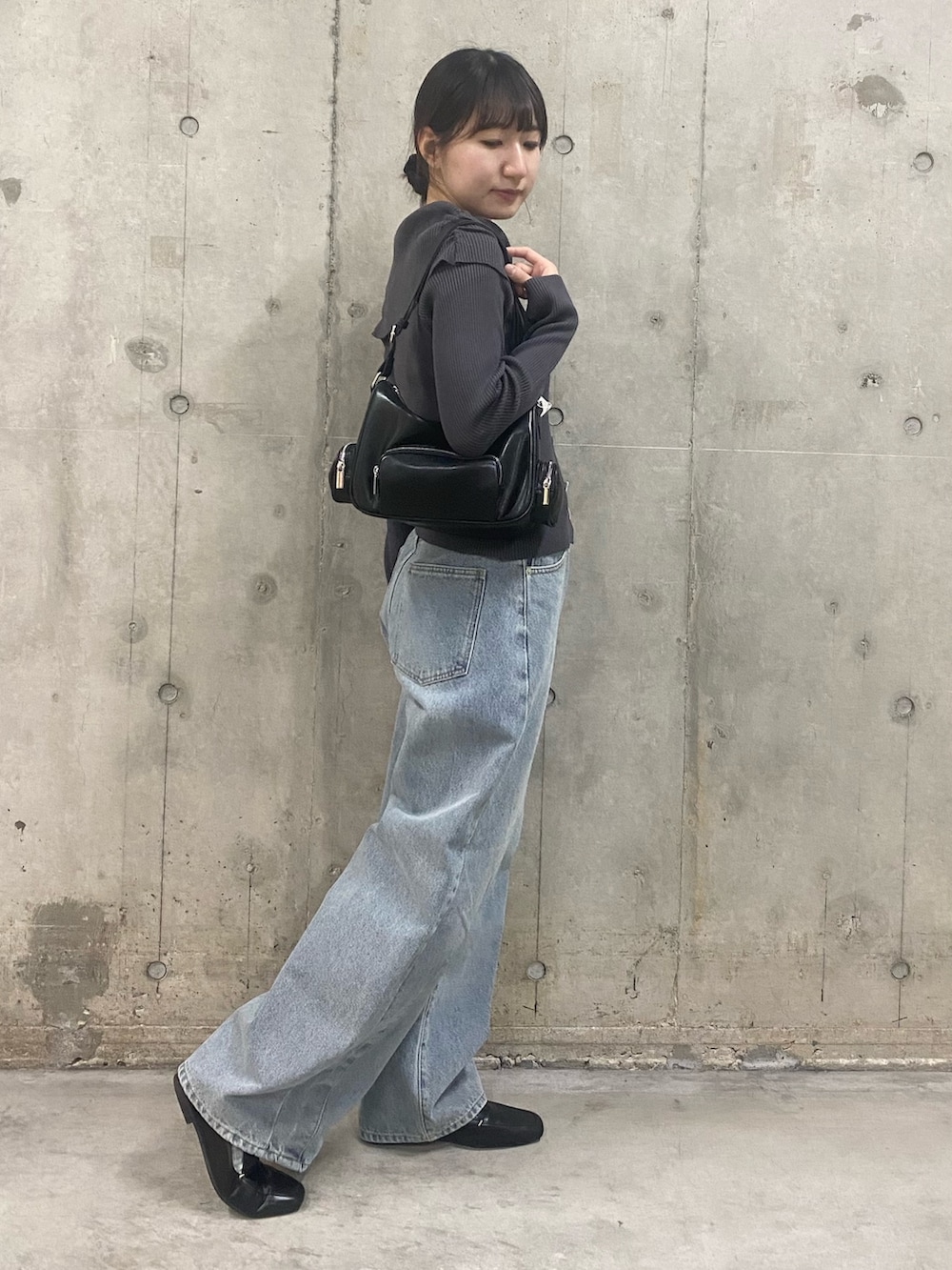 ニットは首元が横に広いのでスッキリ見せてくれます!