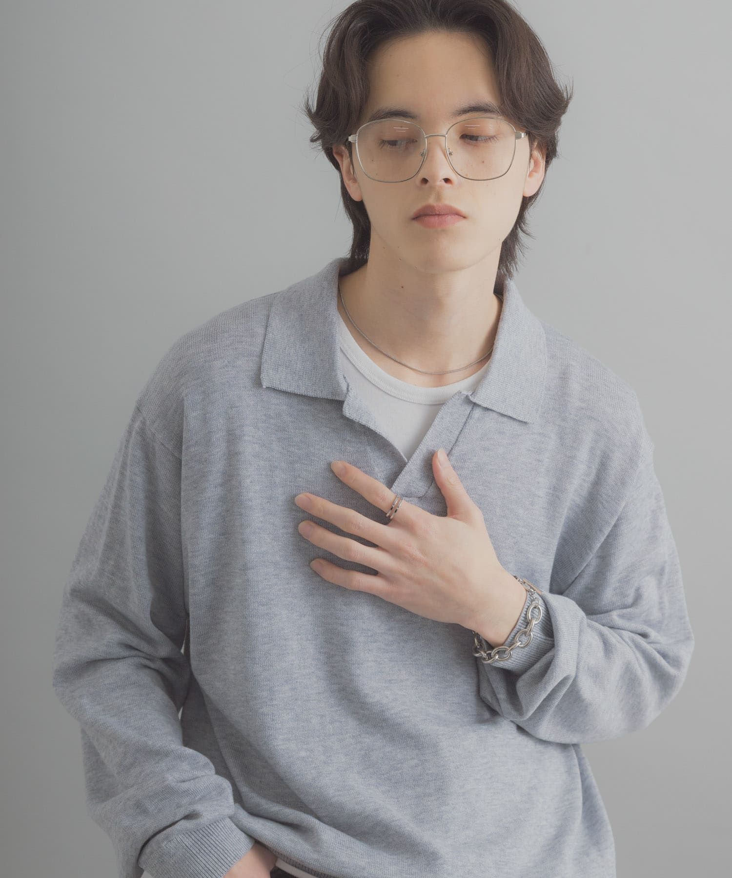 『洗濯可』スキッパーロングスリーブニット