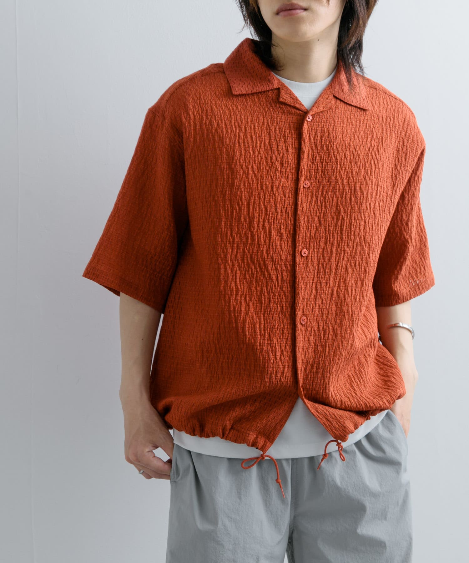 シアーレースドローコードオープンカラーシャツ
