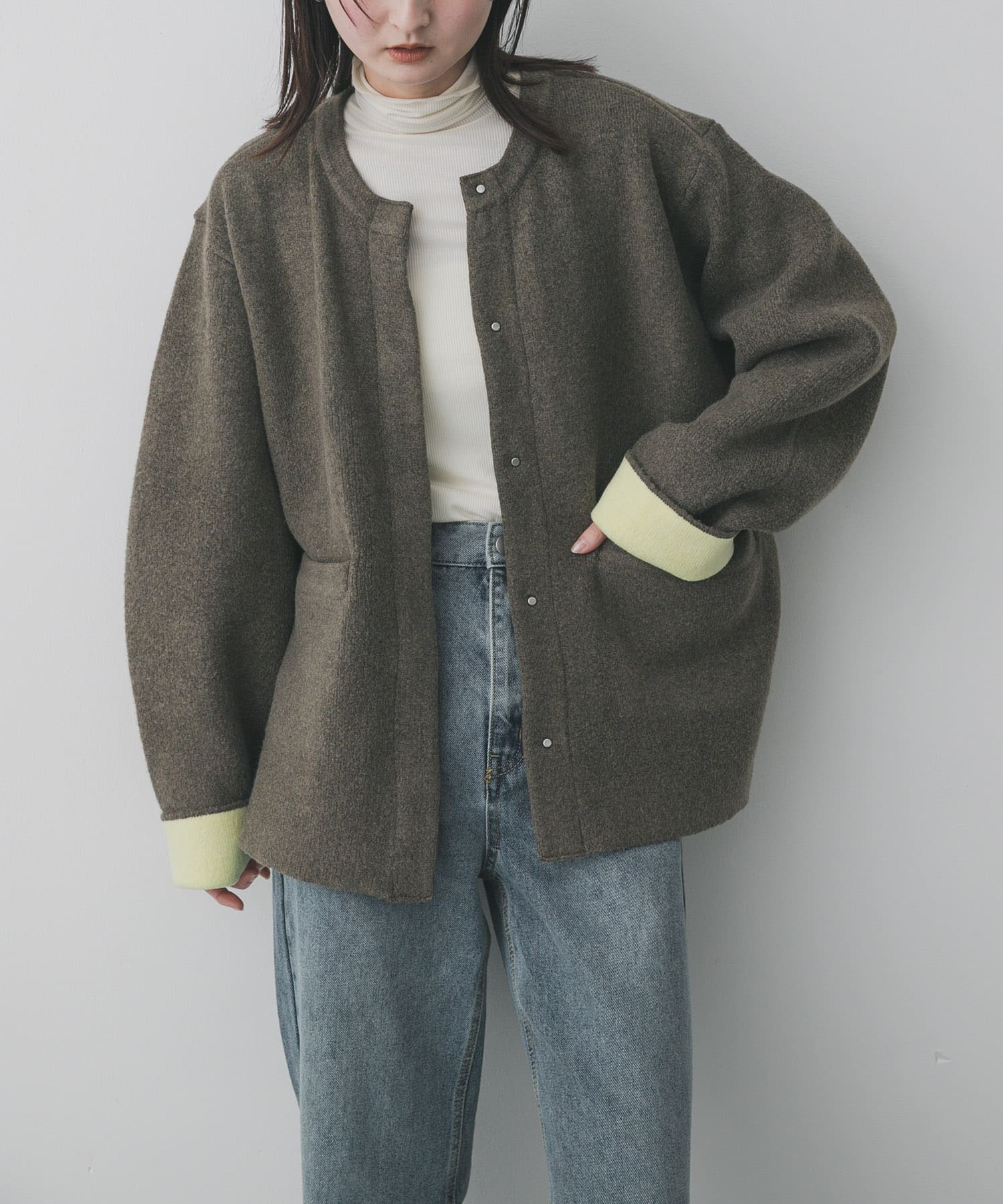 SENSE OF PLACEバイカラーニットコート- カラー:
