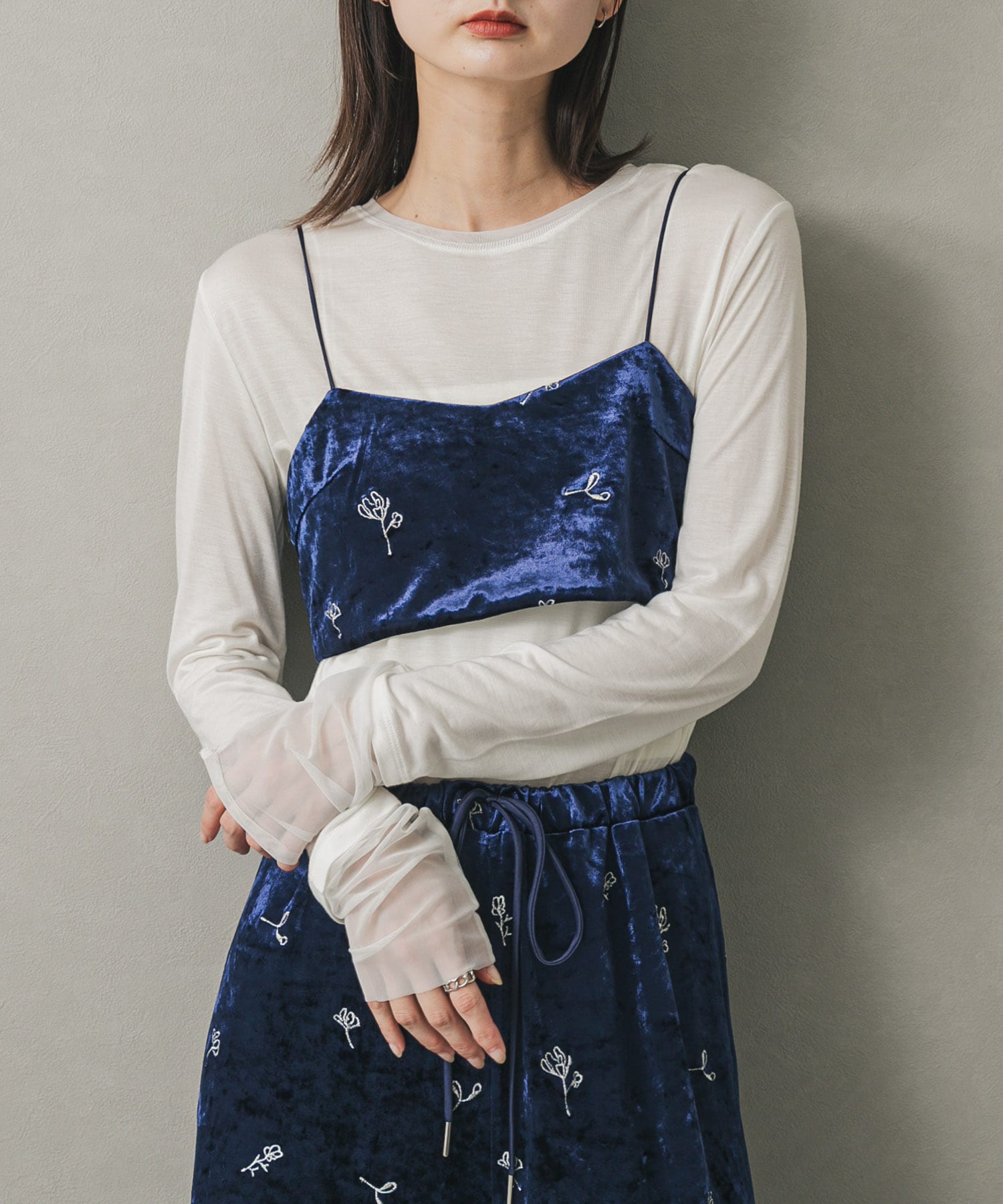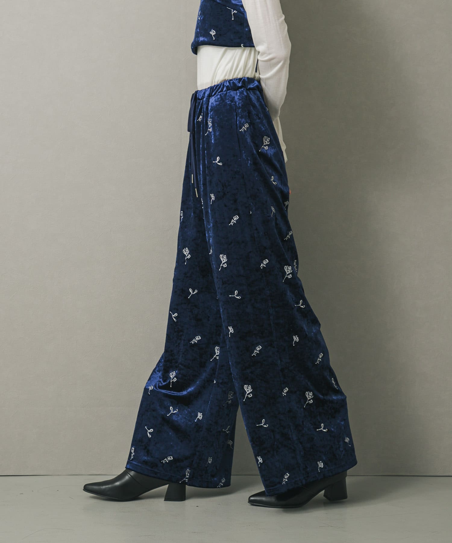 ベロアパンツとビスチェのセットアップ風