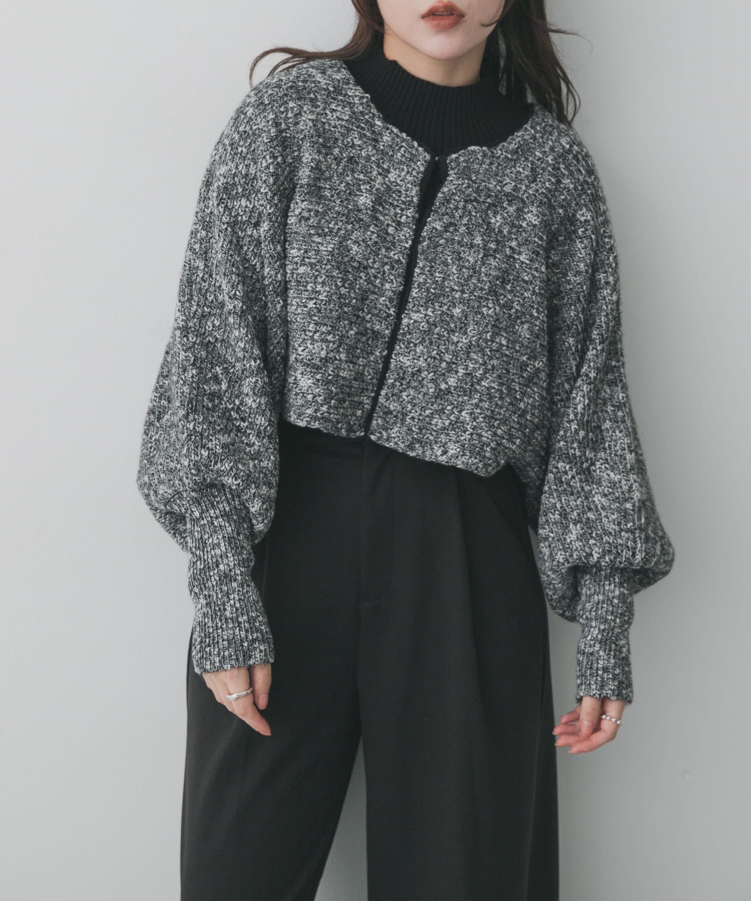 モノトーンのツイード風カーディガンに、バルーントップスを重ねて、シンプルなのに動きのあるコーデにしてみました🤍🖤