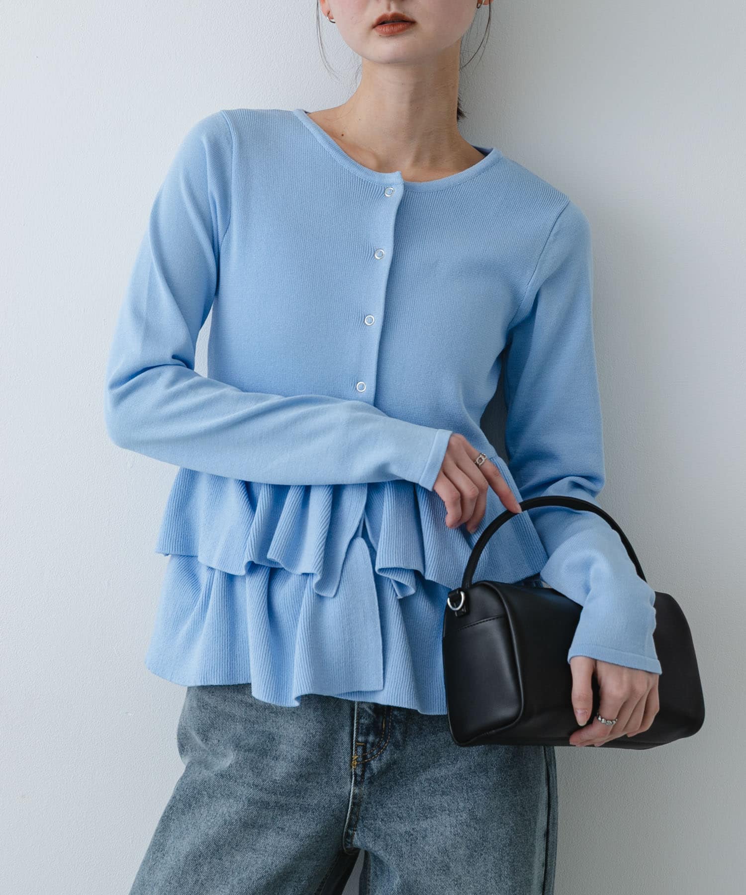 『洗濯可』ウェーブペプラムニットカーディガン