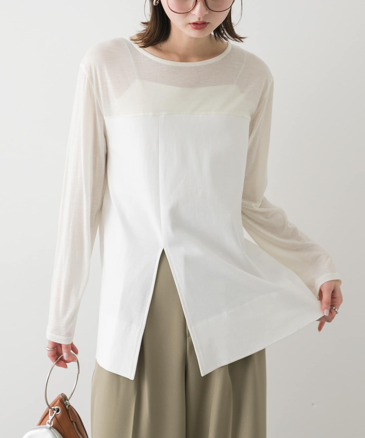 クルーネックドッキングスリットトップ