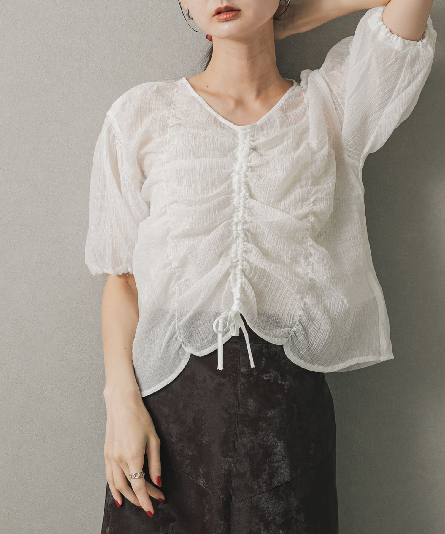 シャーリングブラウス(5分袖)