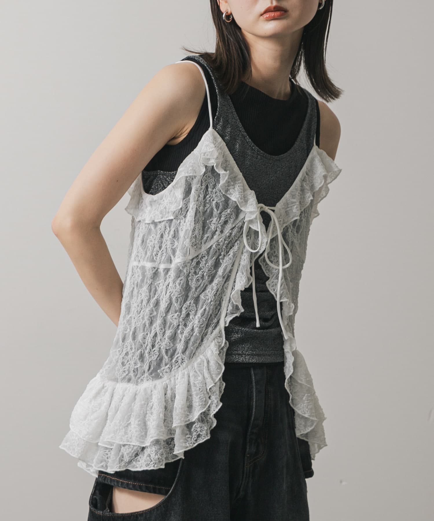フリルレースキャミトップ