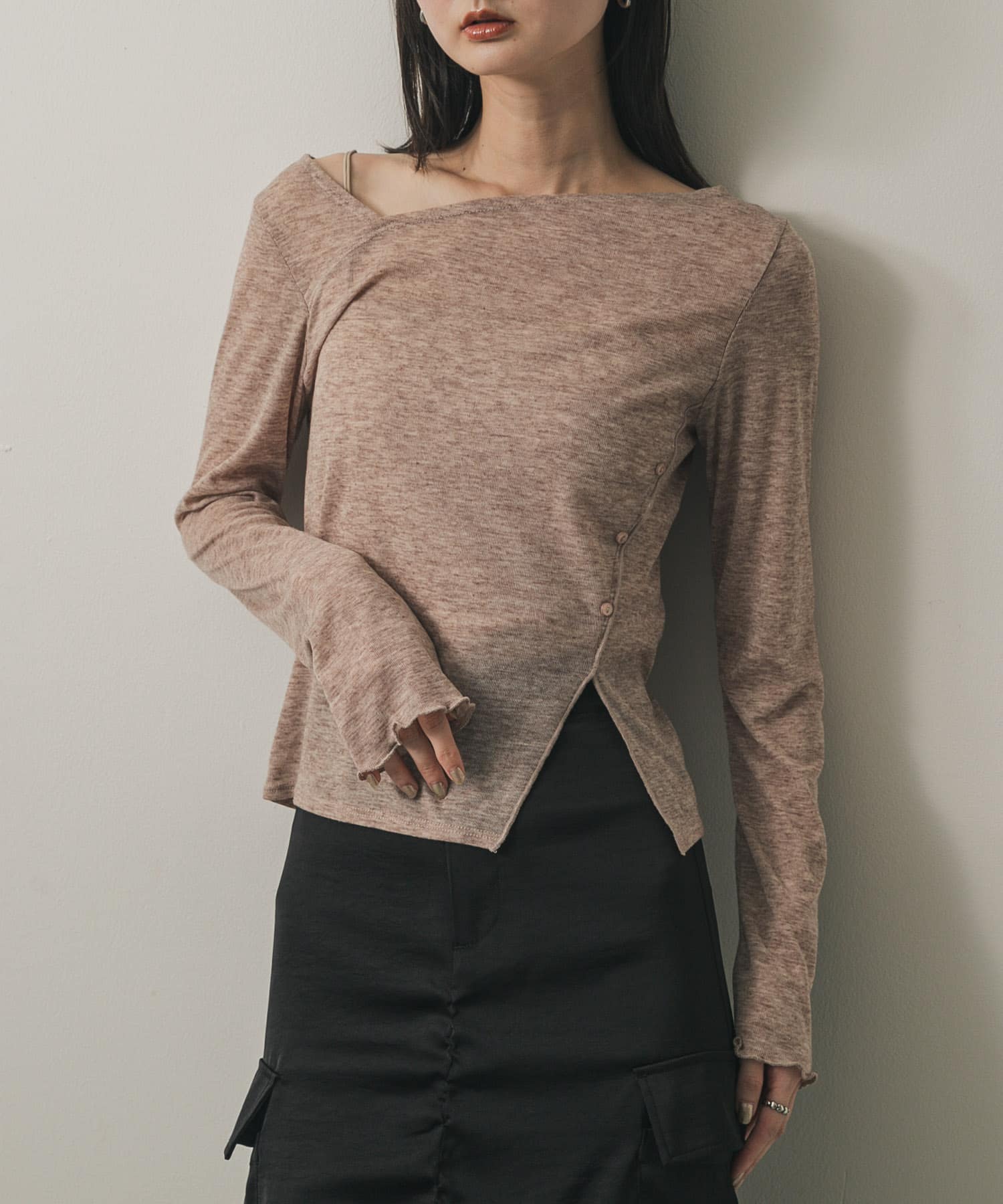 トップスは首元、裾にアシメのデザインつきで肩を落とすとワンショル風に😳♡