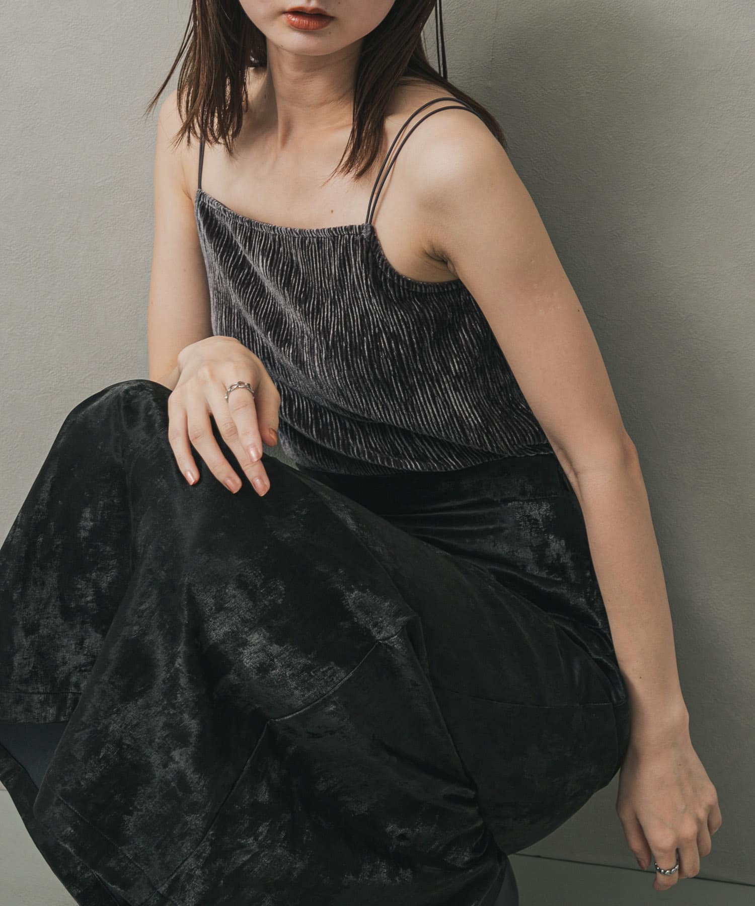 インナーにはベロアのキャミソールを