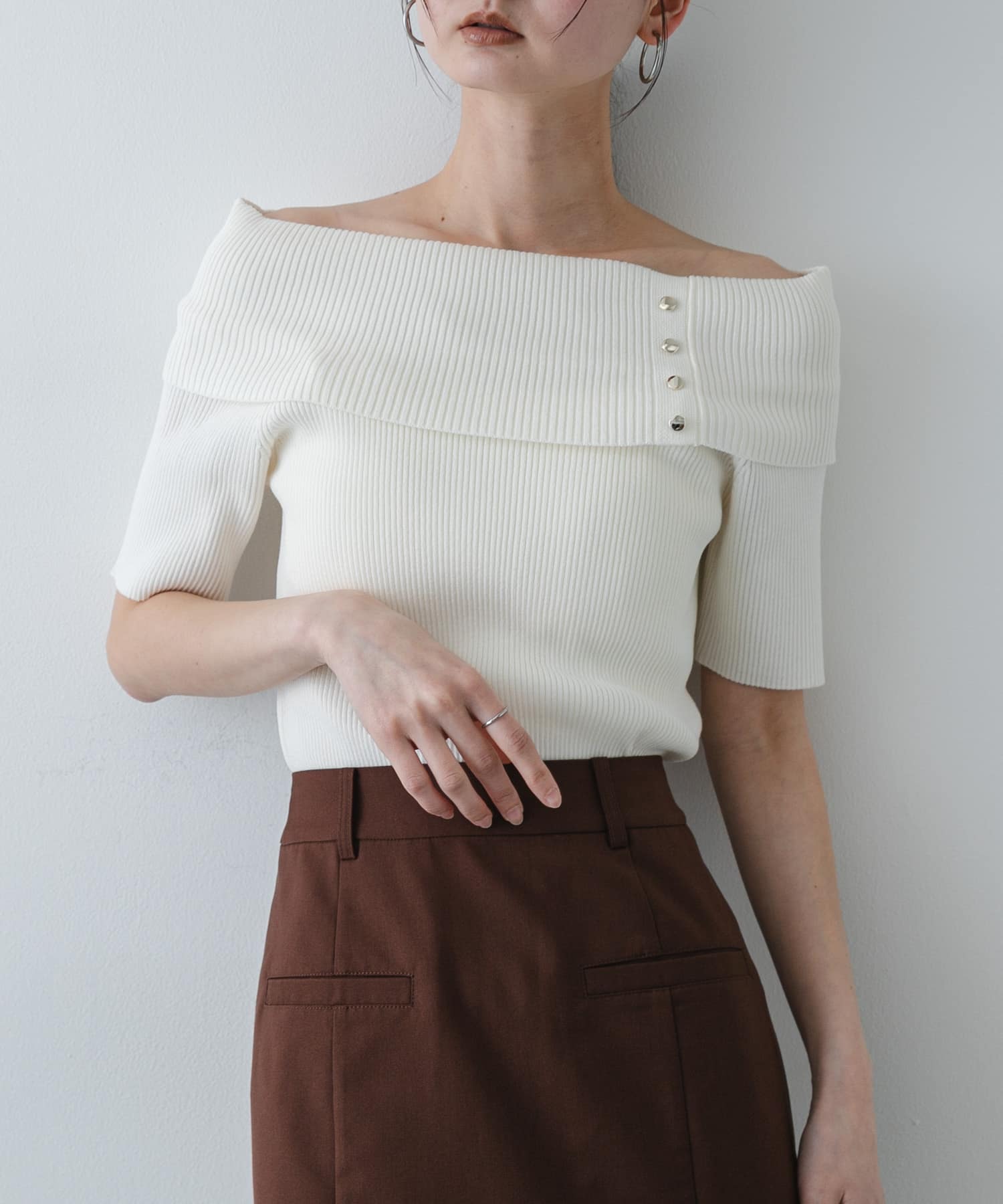 SENSE OF PLACE『洗濯可』メタルボタンオフショルリブセーター- カラー: