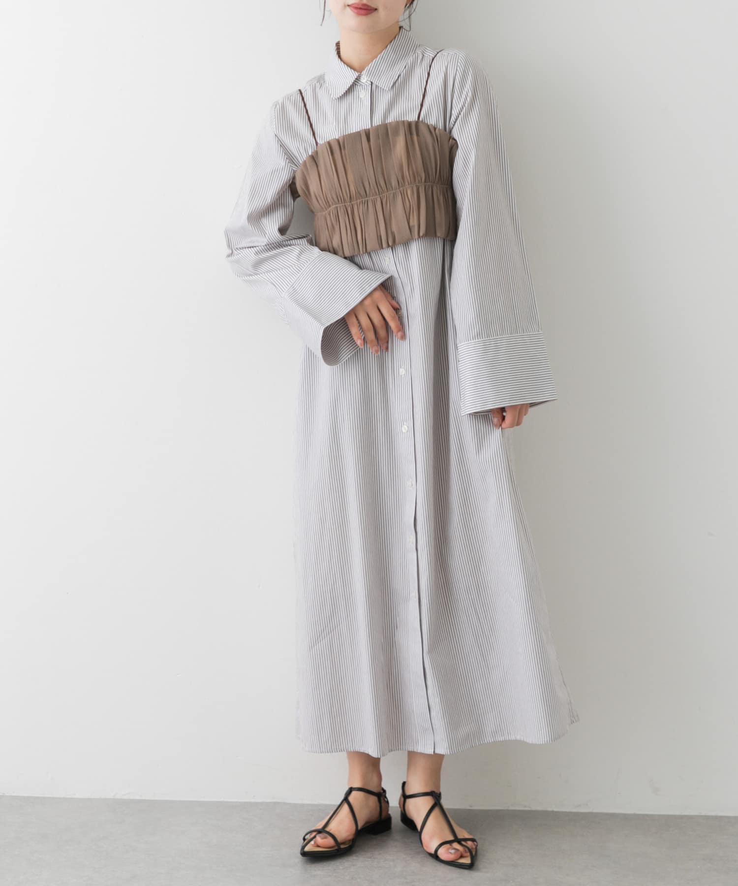 ビスチェセットワンピースはビスチェとシャツワンピ分けても使っていただけるのでめちゃめちゃ万能なアイテムになってます✨