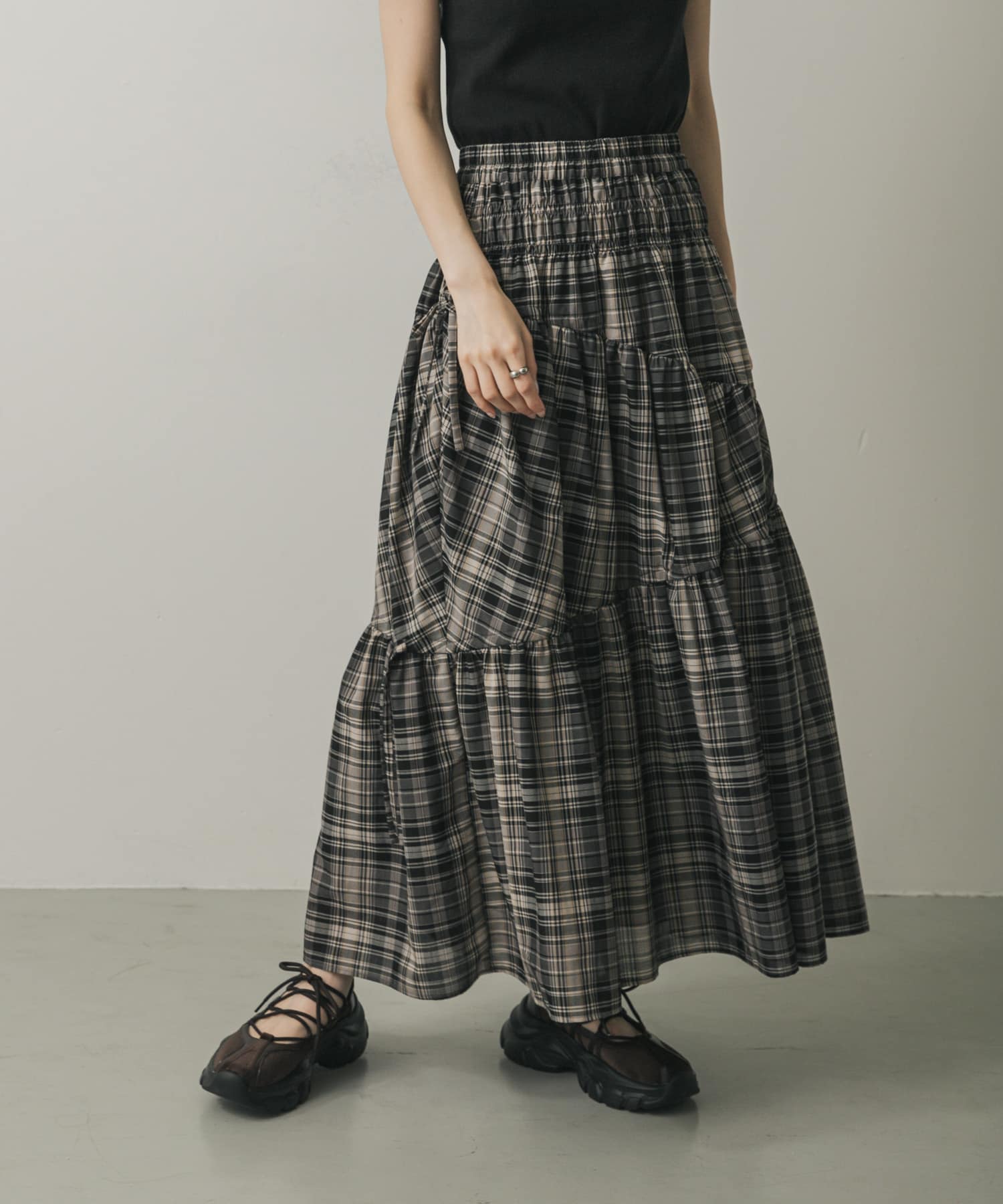 SENSE OF PLACEチェックボリュームスカート- カラー:
