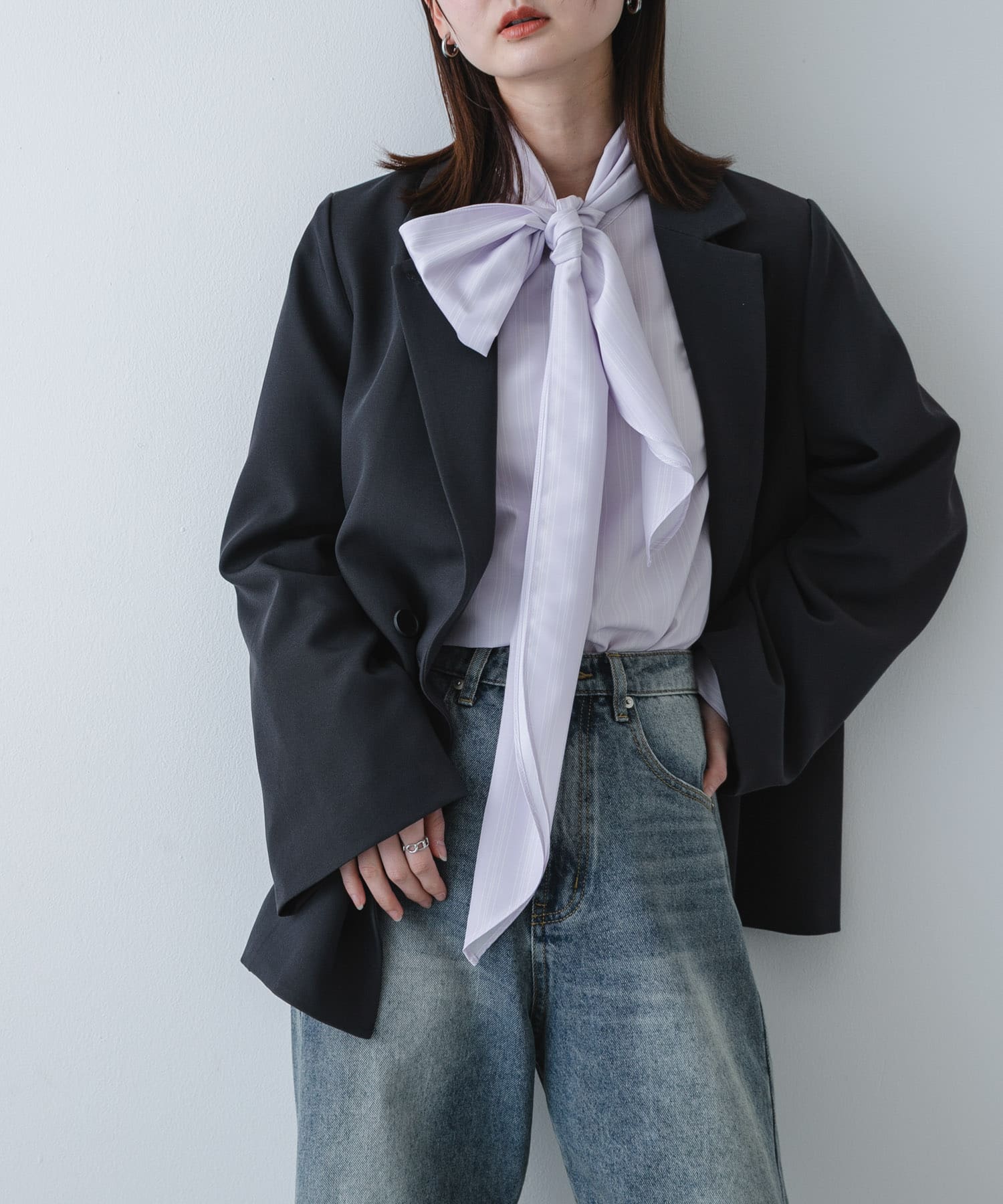 ブラウスはボウタイ部分がセパレートになっているので外して使ってもスッキリ見えます( ᷇࿀ ᷆ )