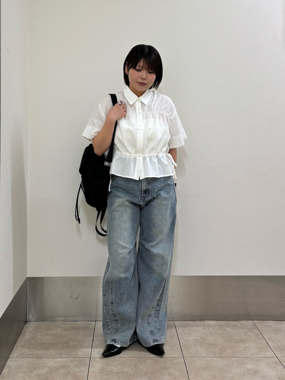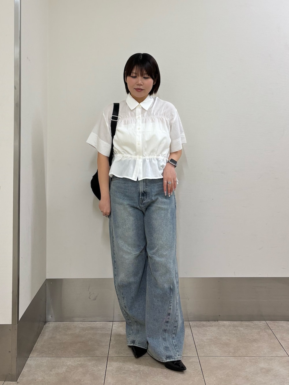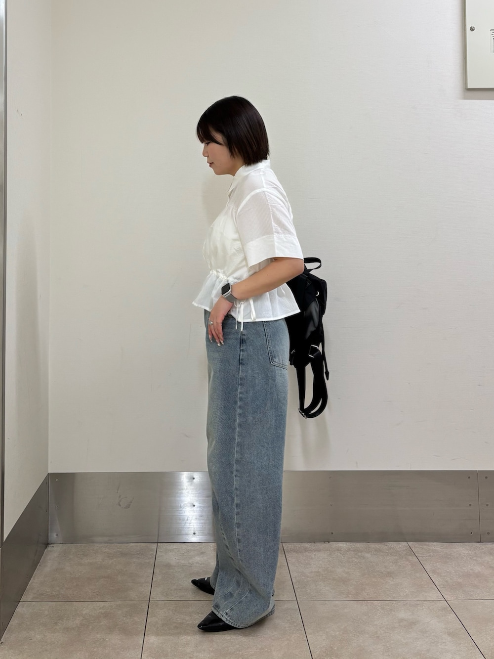 着てみた感じ、サイズ感はジャストサイズ寄りなので肩幅が広く見えるなどはなくスッキリ着れました!首元のボタンは1つ開けると骨格ストレートさんは首が詰まって見えないので🙆🏻♀️
