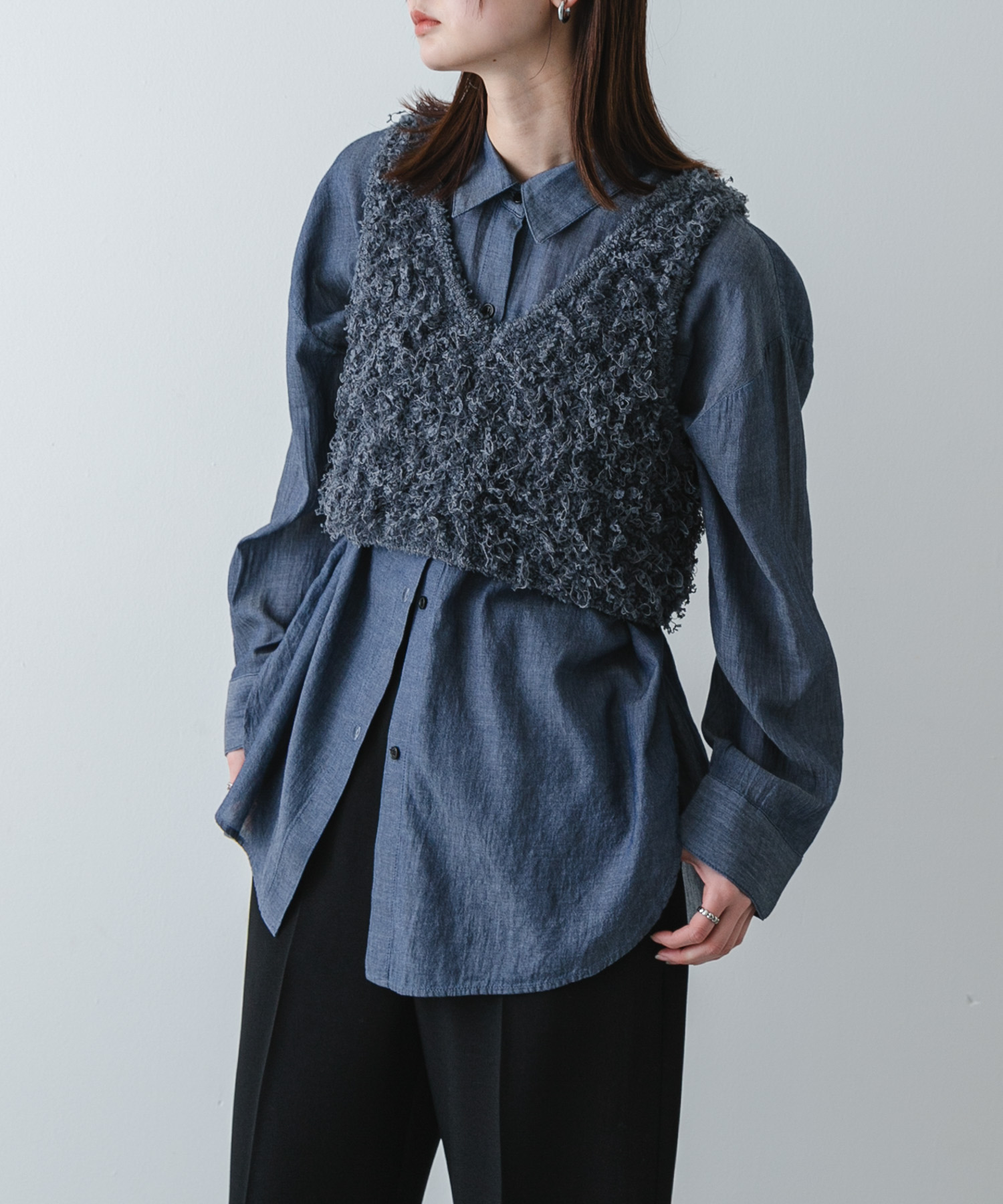 『洗濯可』2wayリボンヤーンループニットベスト