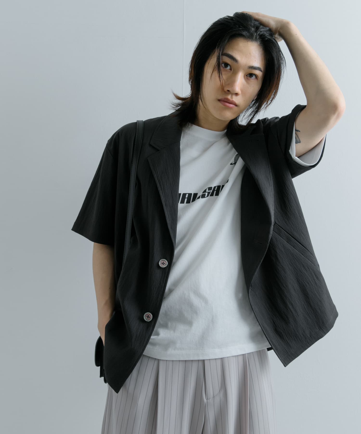 ジャケットはメンズアイテムですが、オーバーサイズで程よくゆるっとしたシルエットが最高です♡