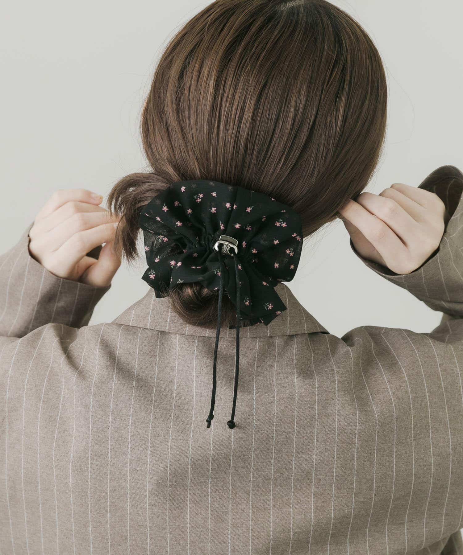 SMELLYフラワープリントドローコードシュシュ- 着用カラー: