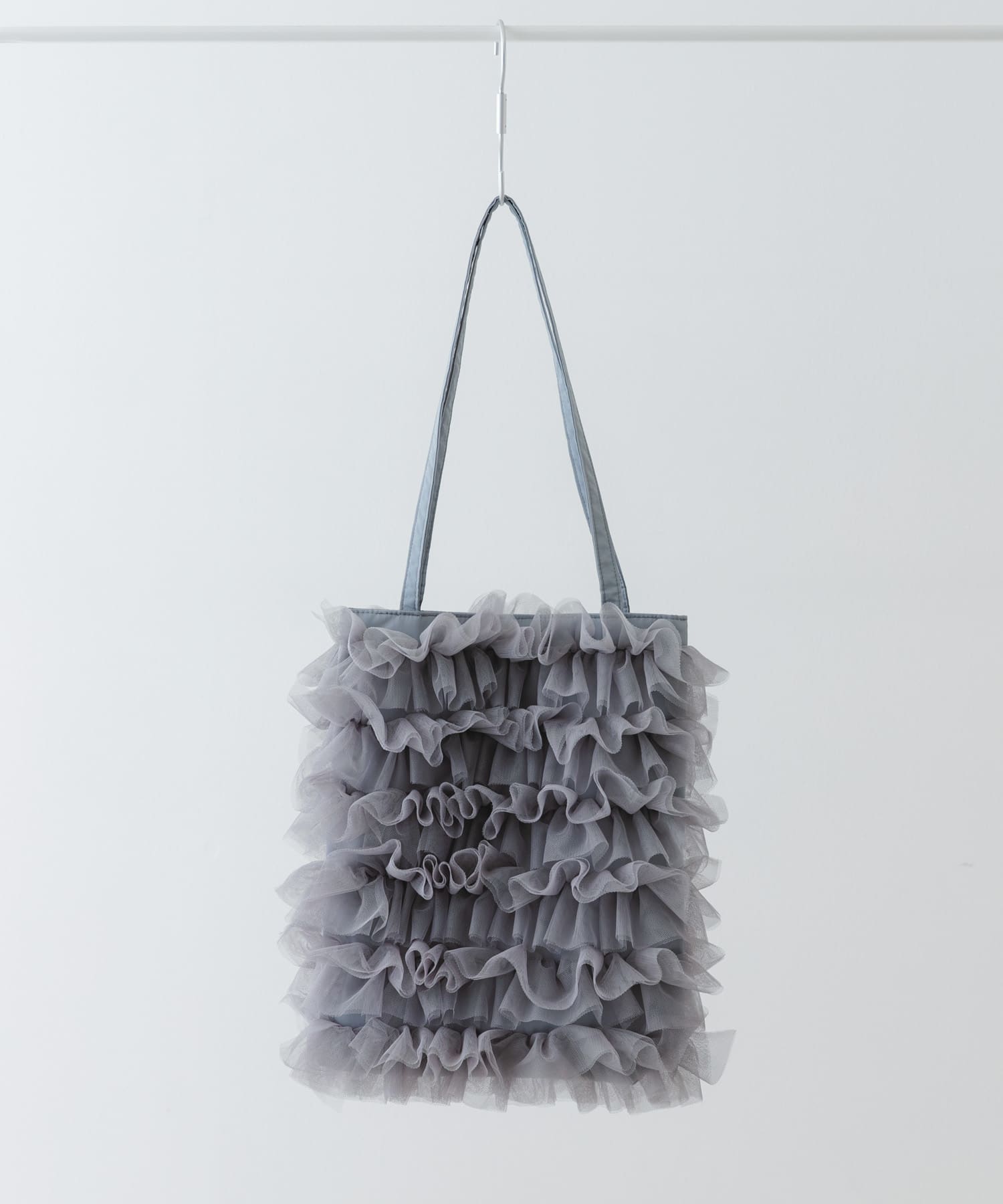 トップス・ボトムス共にシンプルなので、ネックレスとチュールのトートバッグを合わせて抜け感をだしました!