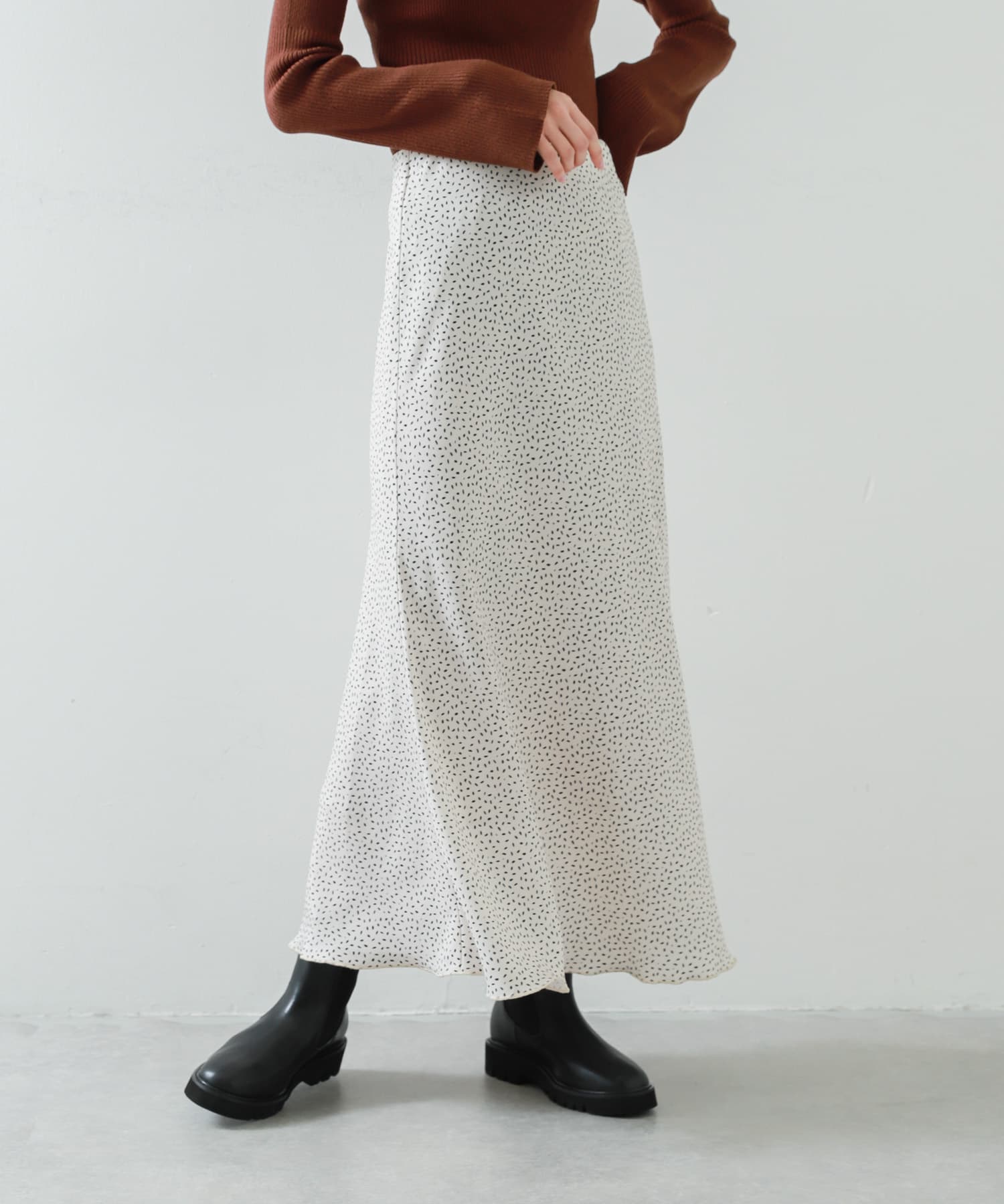 スカートも揺れると動きが綺麗で、ドット柄も大きすぎないので、柄物が苦手な方でも挑戦しやすい1枚です◎