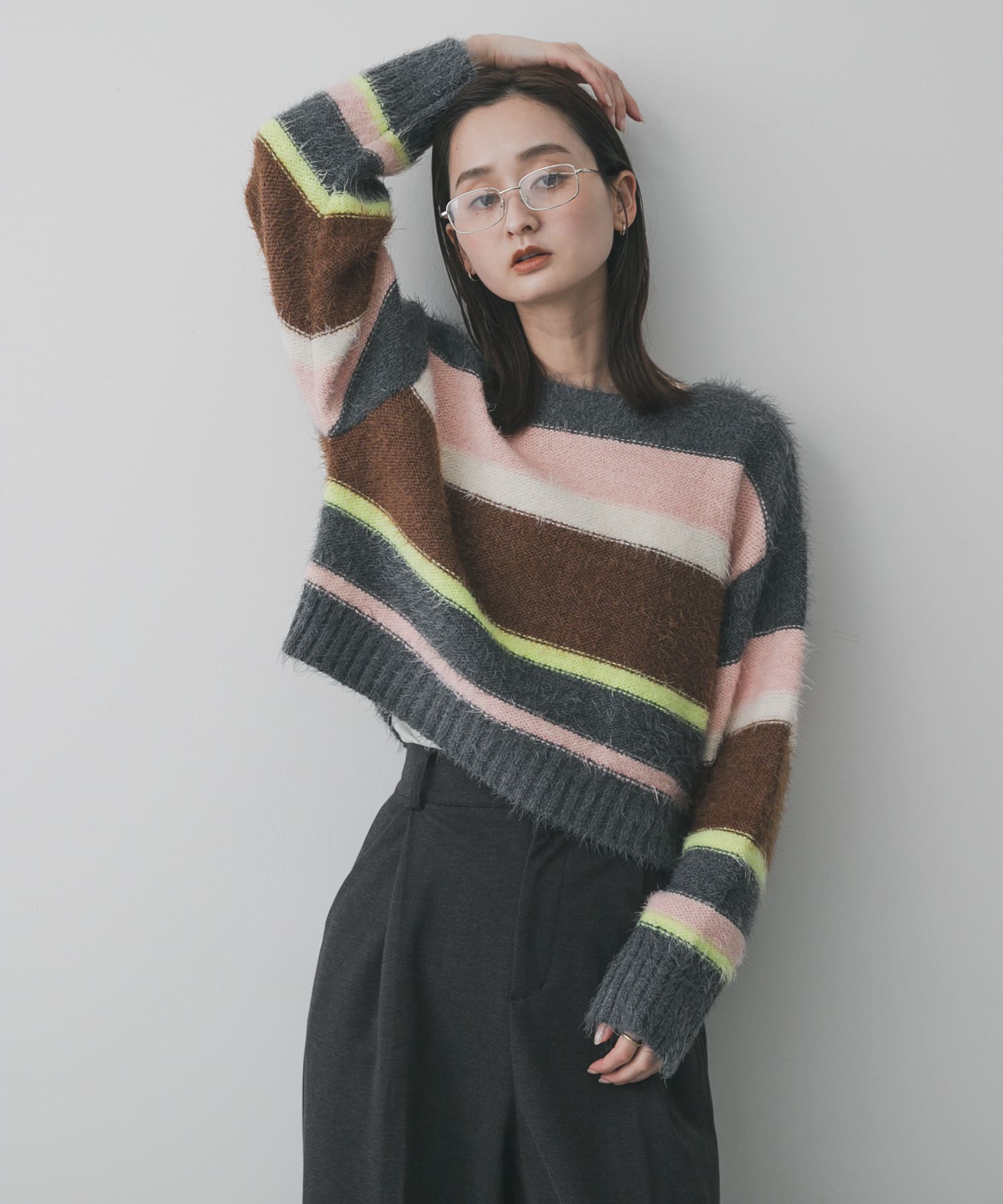 トップスのボーダーの幅が異なっていて様々なお色で配色されているのがとても可愛いです💞