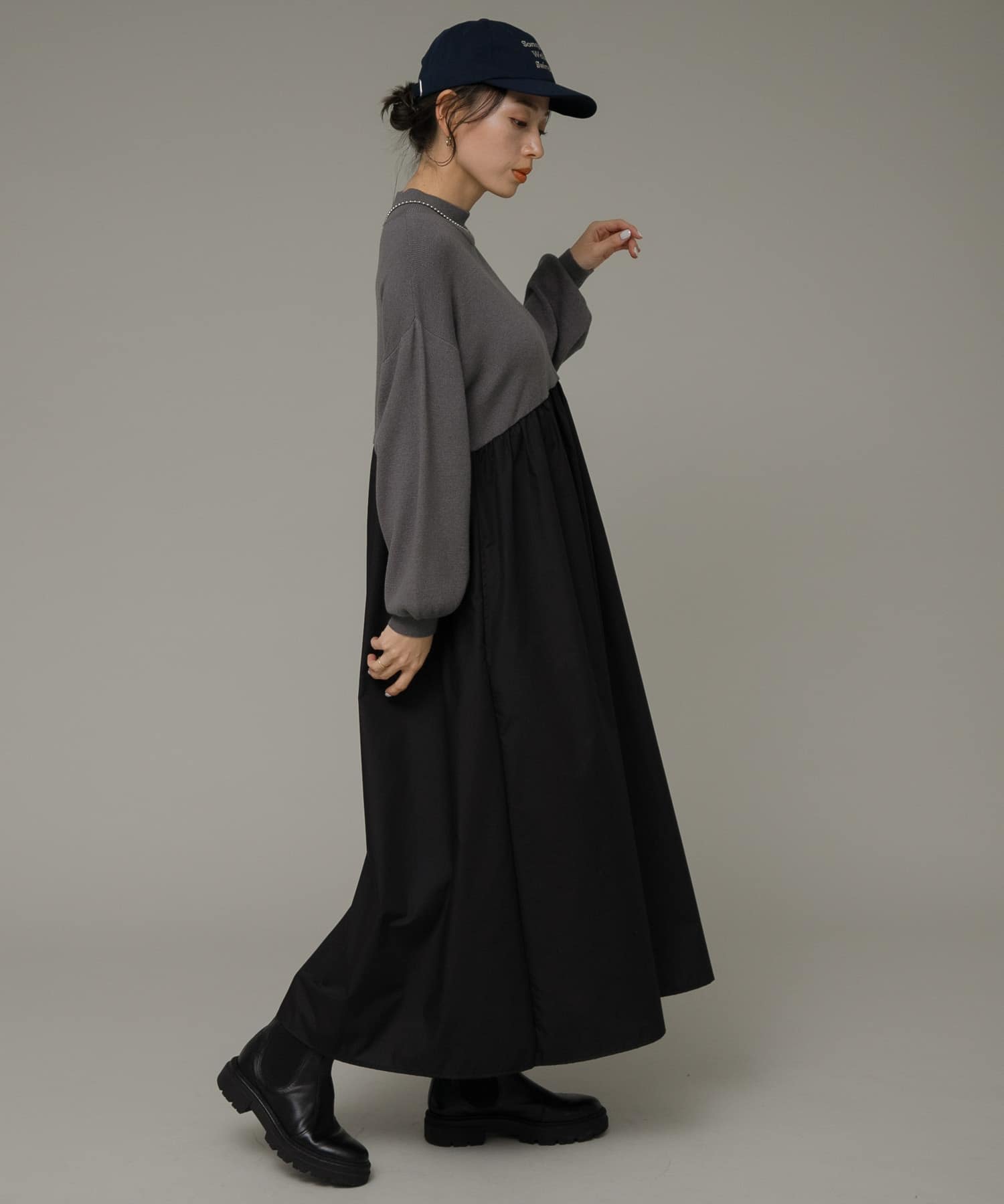 ドッキングワンピースはハイウエストな切り替えなので、シルエットがとっても綺麗です。