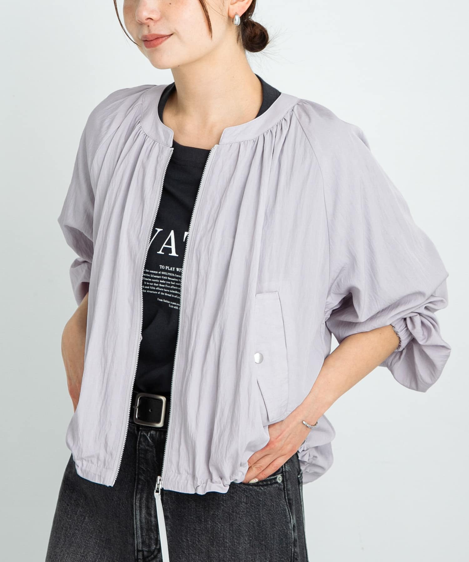 ライトシアーノーカラーブルゾン