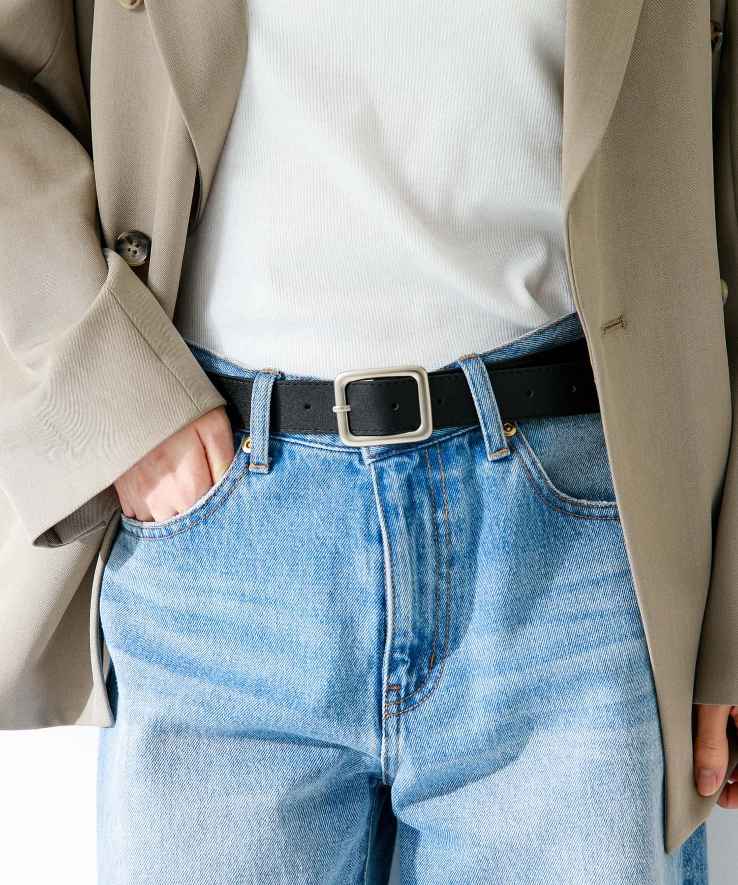 デニムは36がジャストサイズですが、在庫欠けの為38を着用してベルトできゅっとウエストを絞っています。