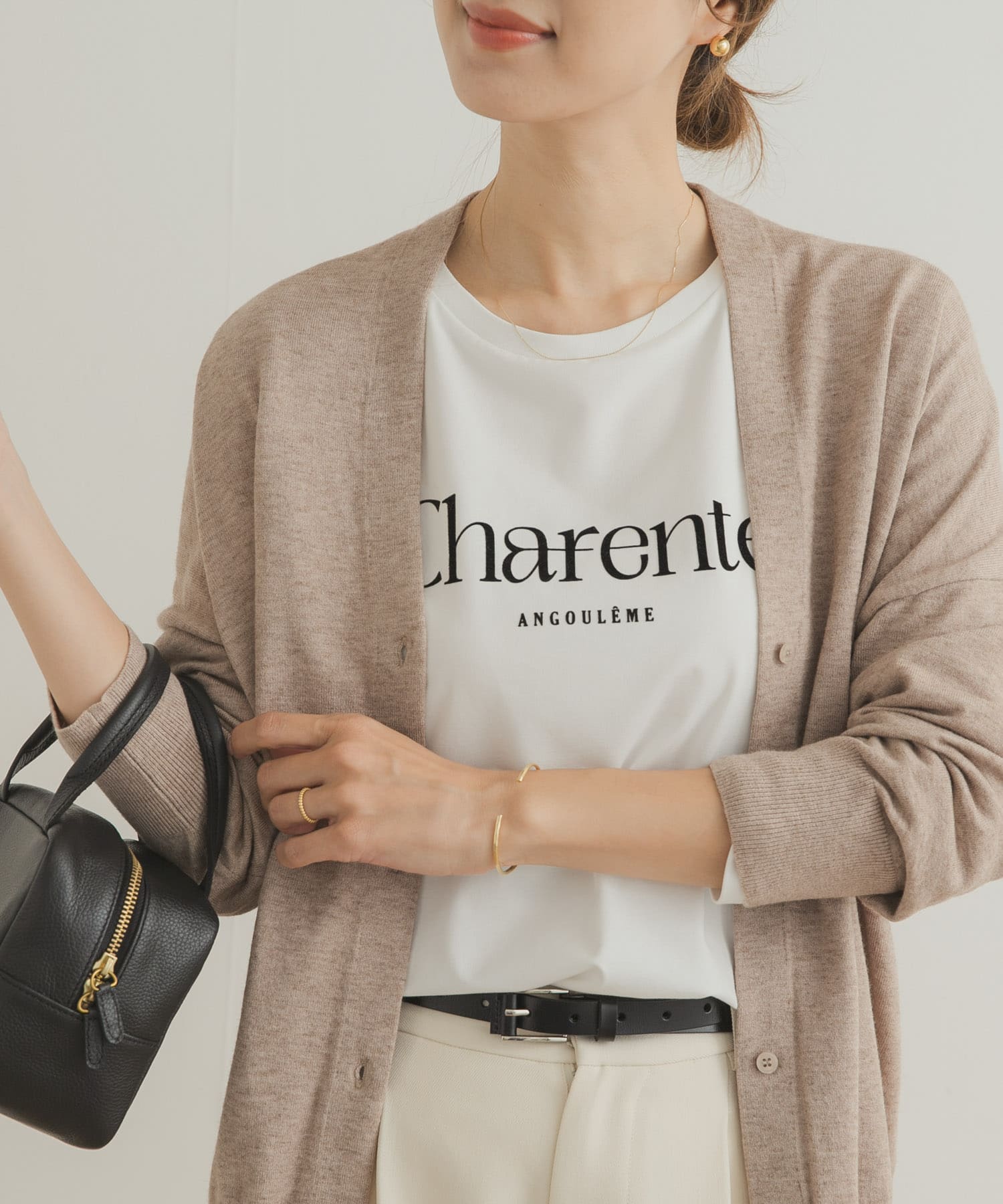 今回は、ロゴTシャツをアクセントに、トレンドのベロアパンツと合わせたカジュアルコーディネートです。
