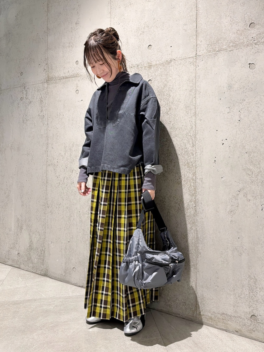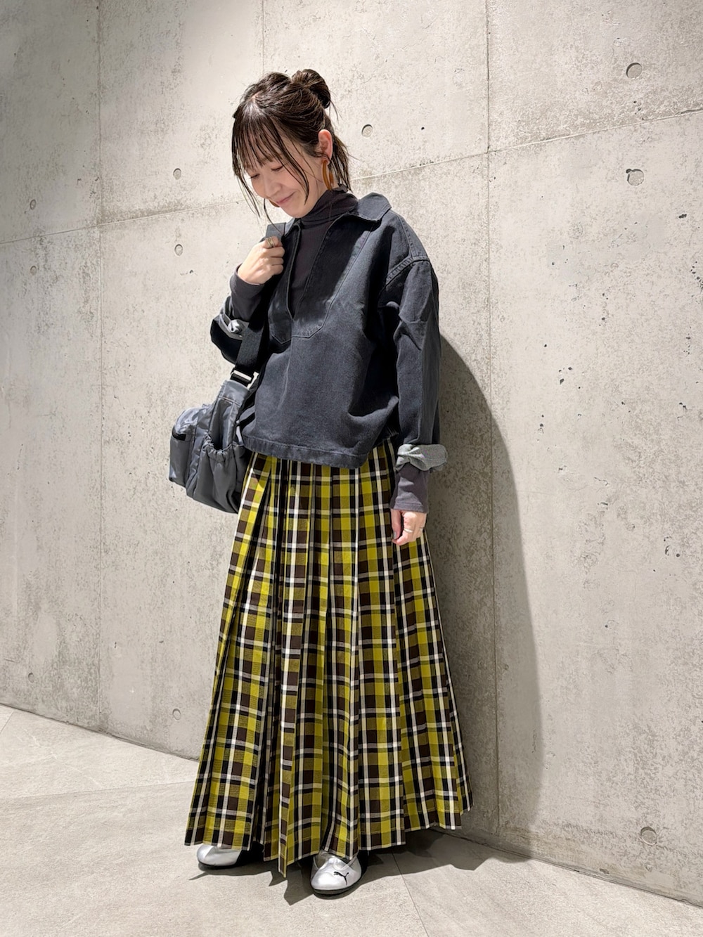 今回は、チェック柄のプリーツスカートを合わせた、大人カジュアルコーディネート。