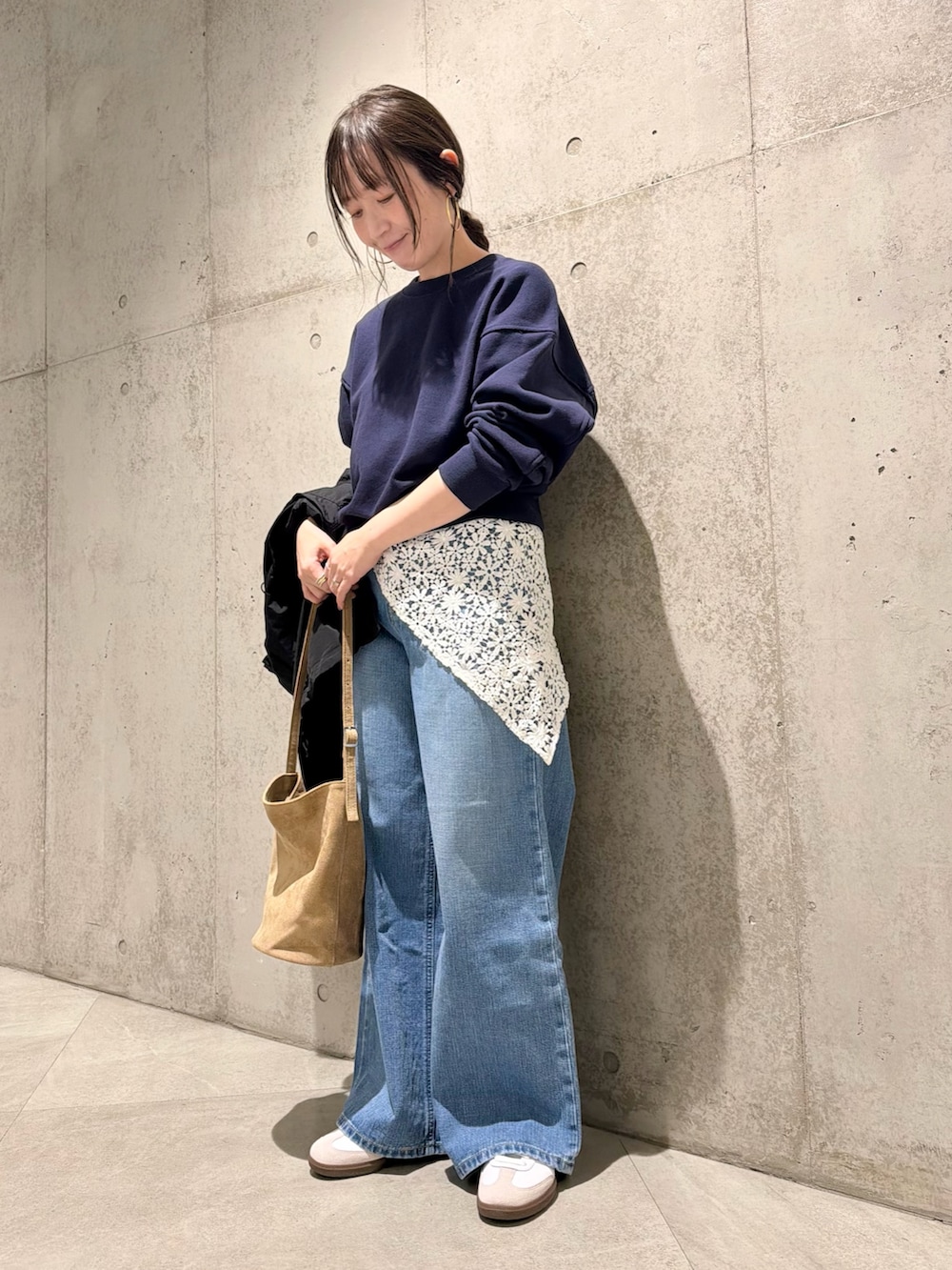 今回は、ワイドデニムと合わせたカジュアルコーディネート。