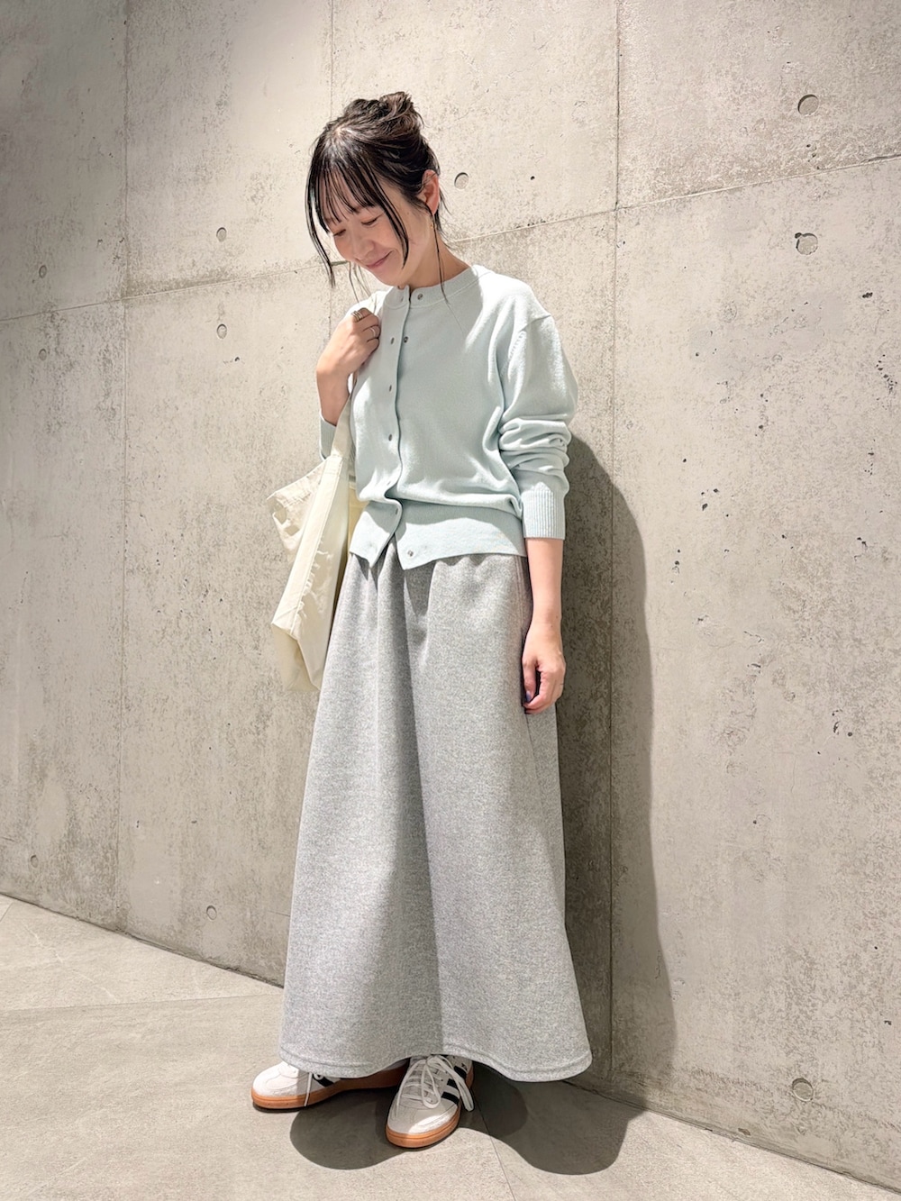 今回は、淡いカラーで、春を意識したコーディネートです。