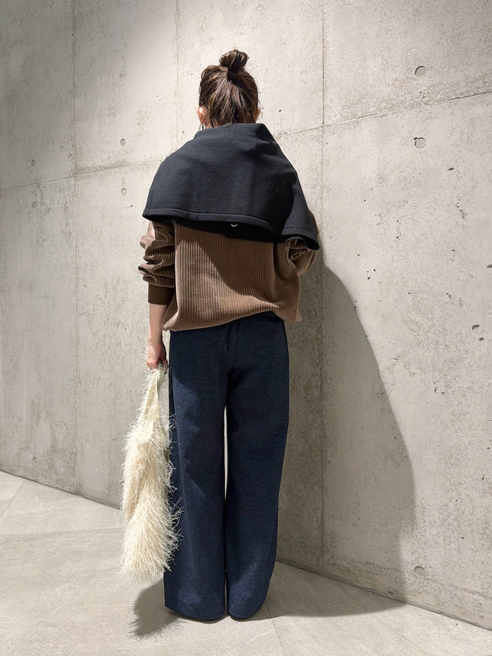 表はモール調のコーデュロイに、裏側はなめらかな生地で、ニット特有のチクチクが苦手な方にもおすすめです。