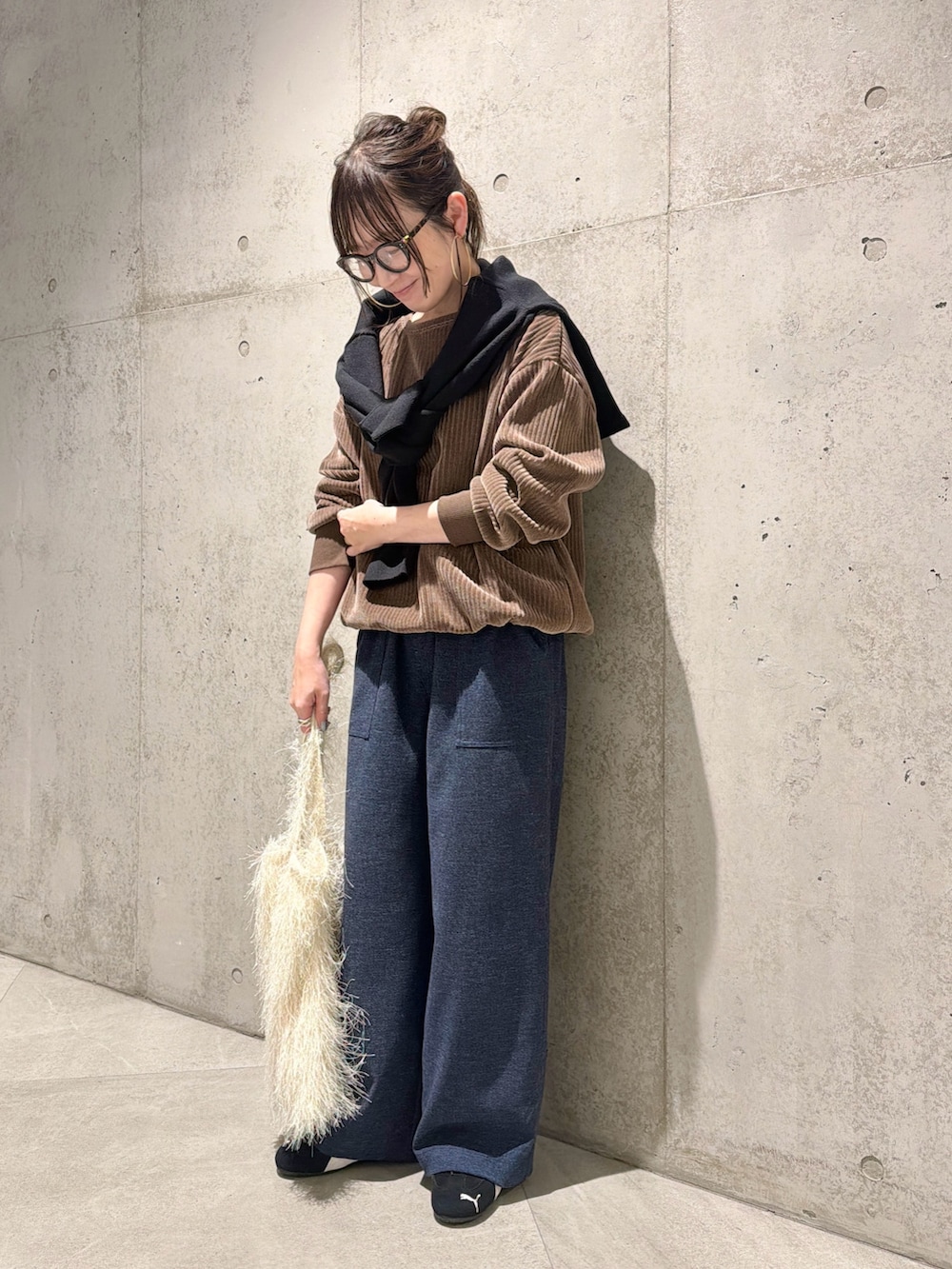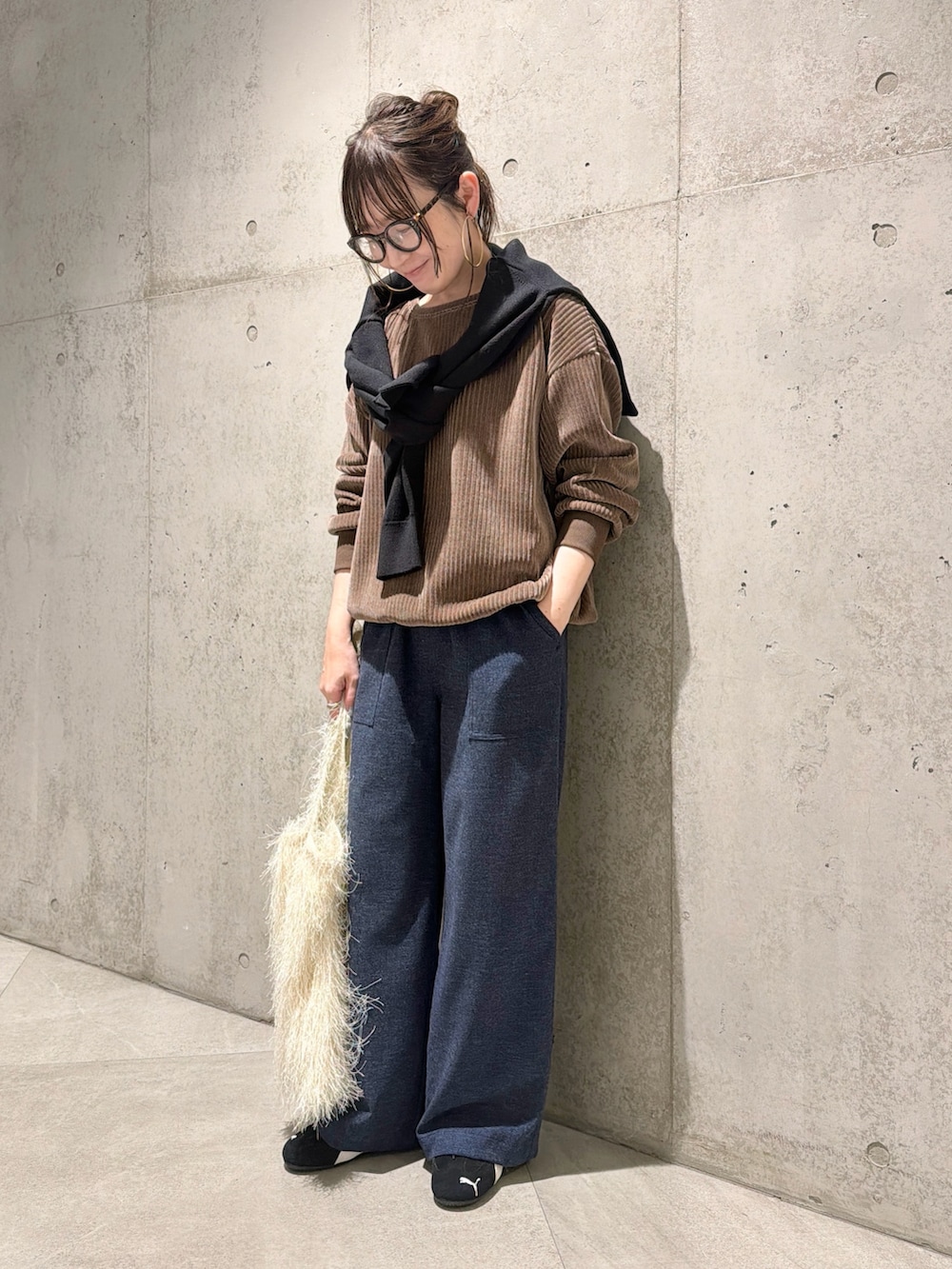 今回は、カーディガンを肩掛けしてアクセントにした、カジュアルコーディネート。