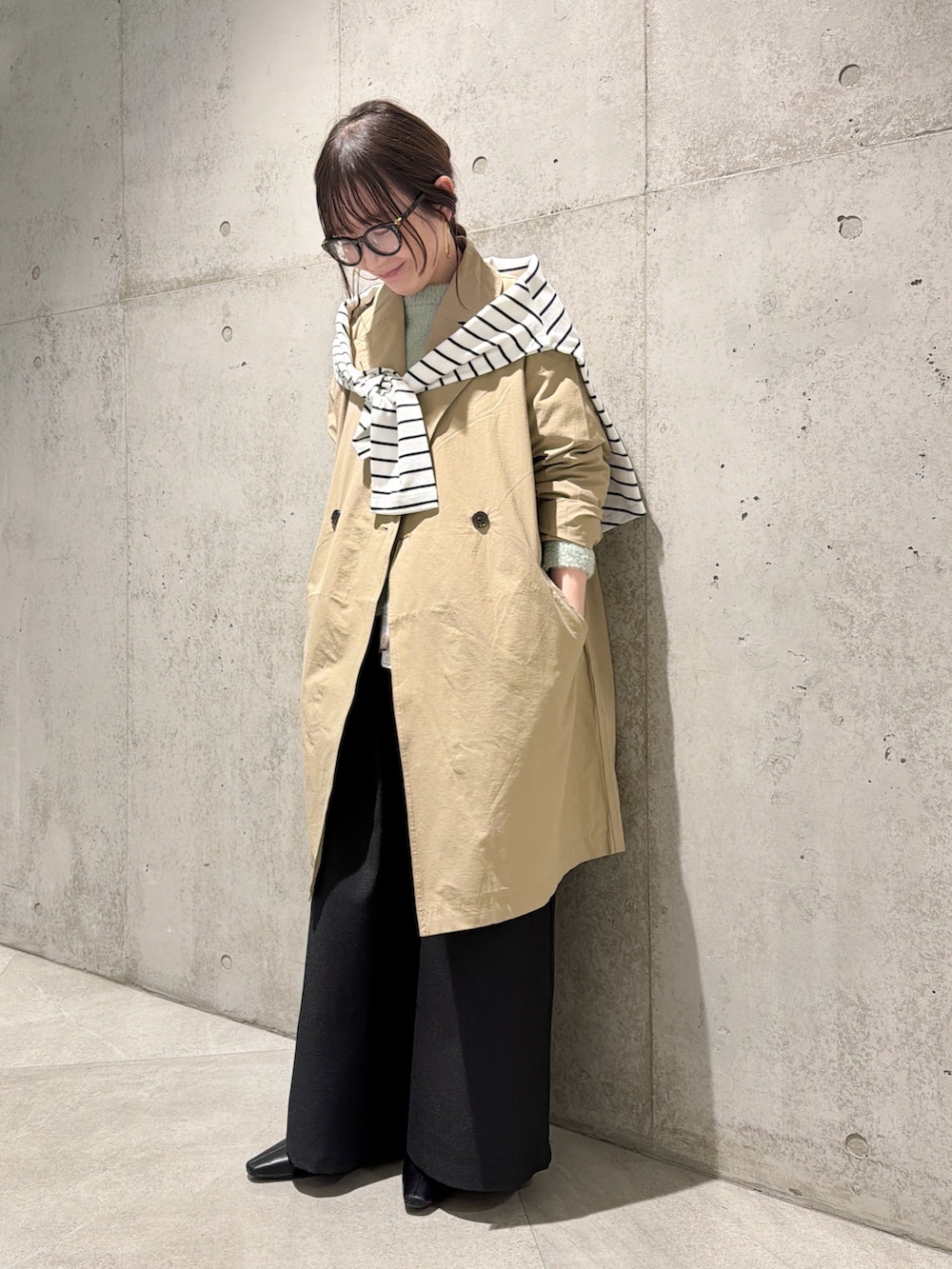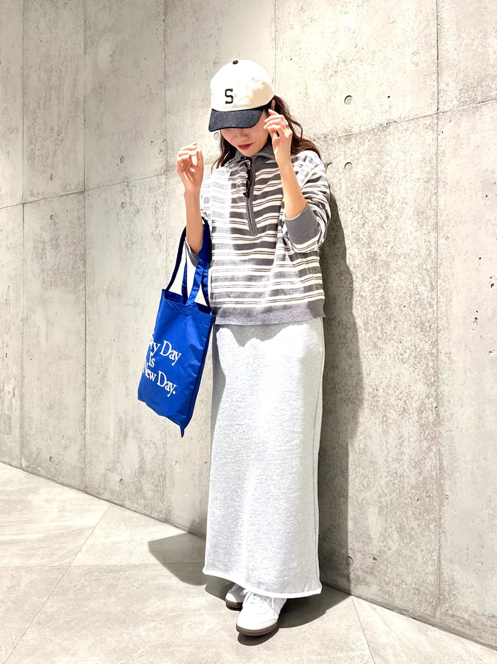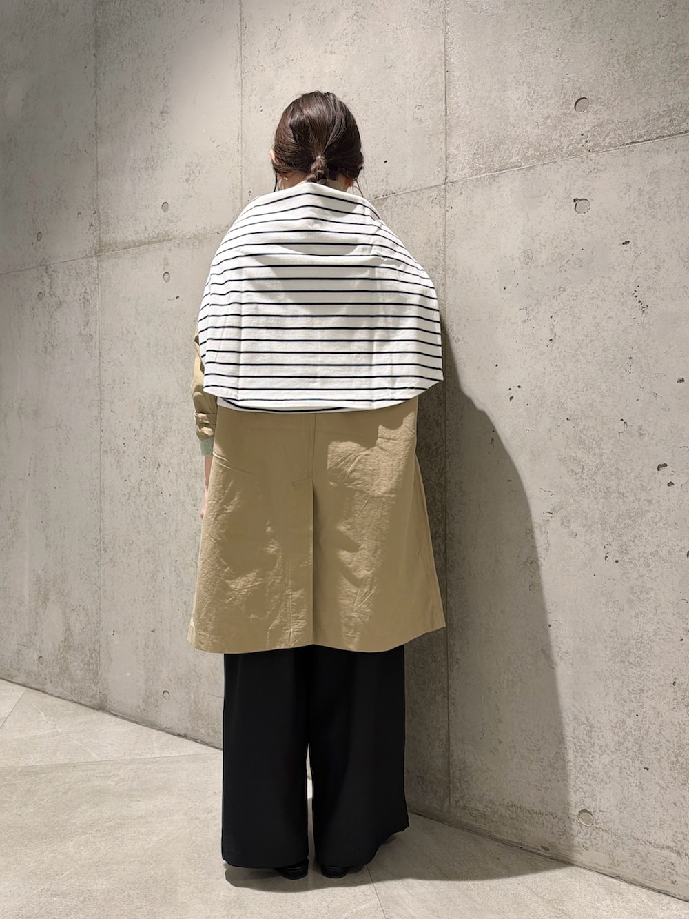 ボーダー柄のトップスを肩掛けして、トレンド感をプラスしてみました。