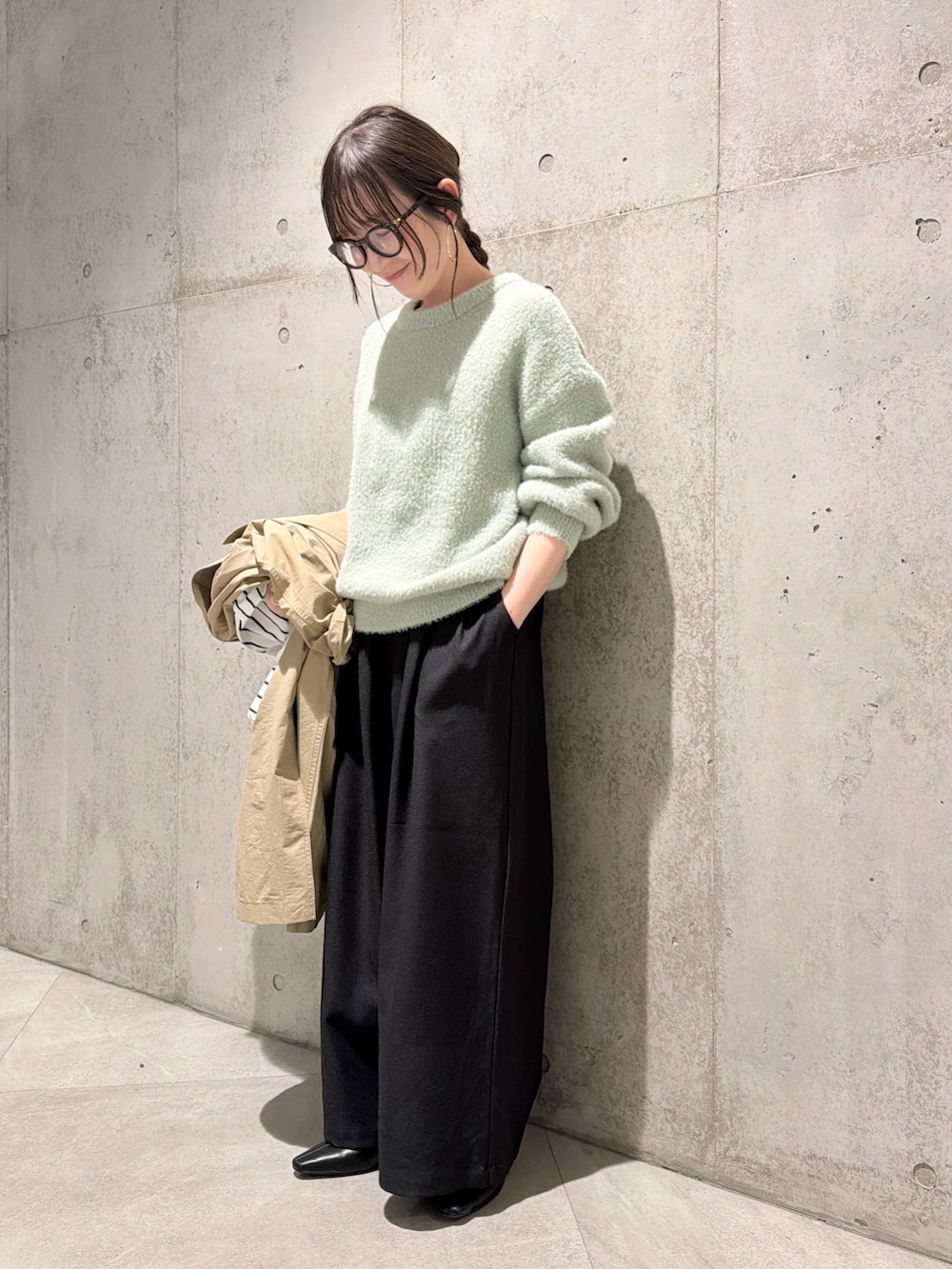 今回は、ミントカラーのニットを差し色にした、大人カジュアルコーディネートです。