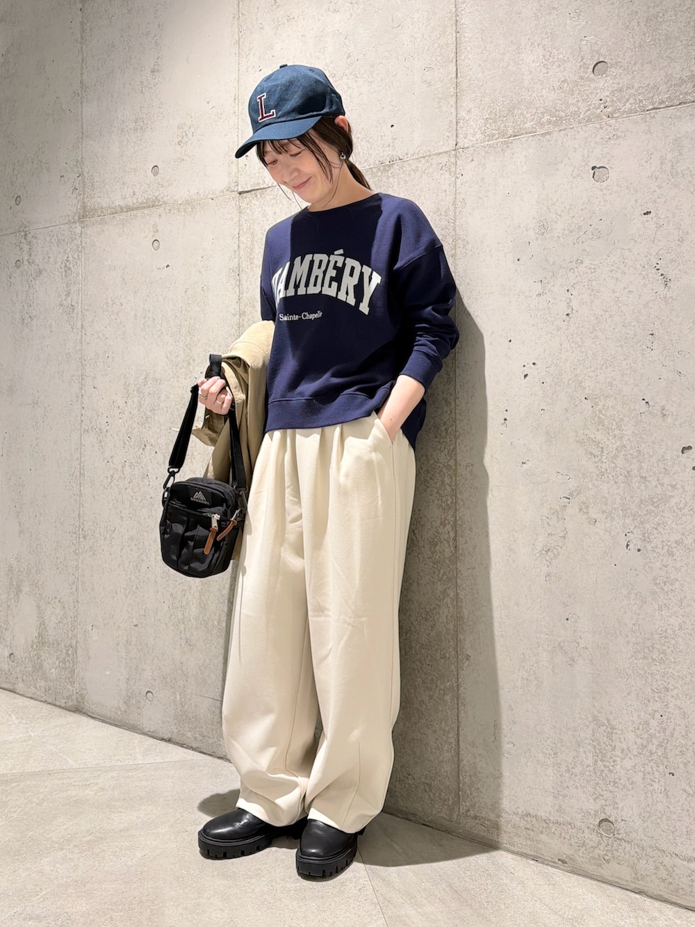 今回は、スウェットのロゴをアクセントにした、カジュアルコーディネートです。