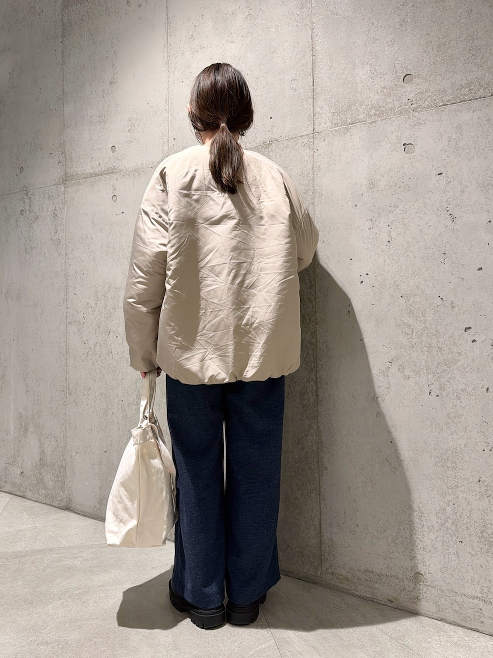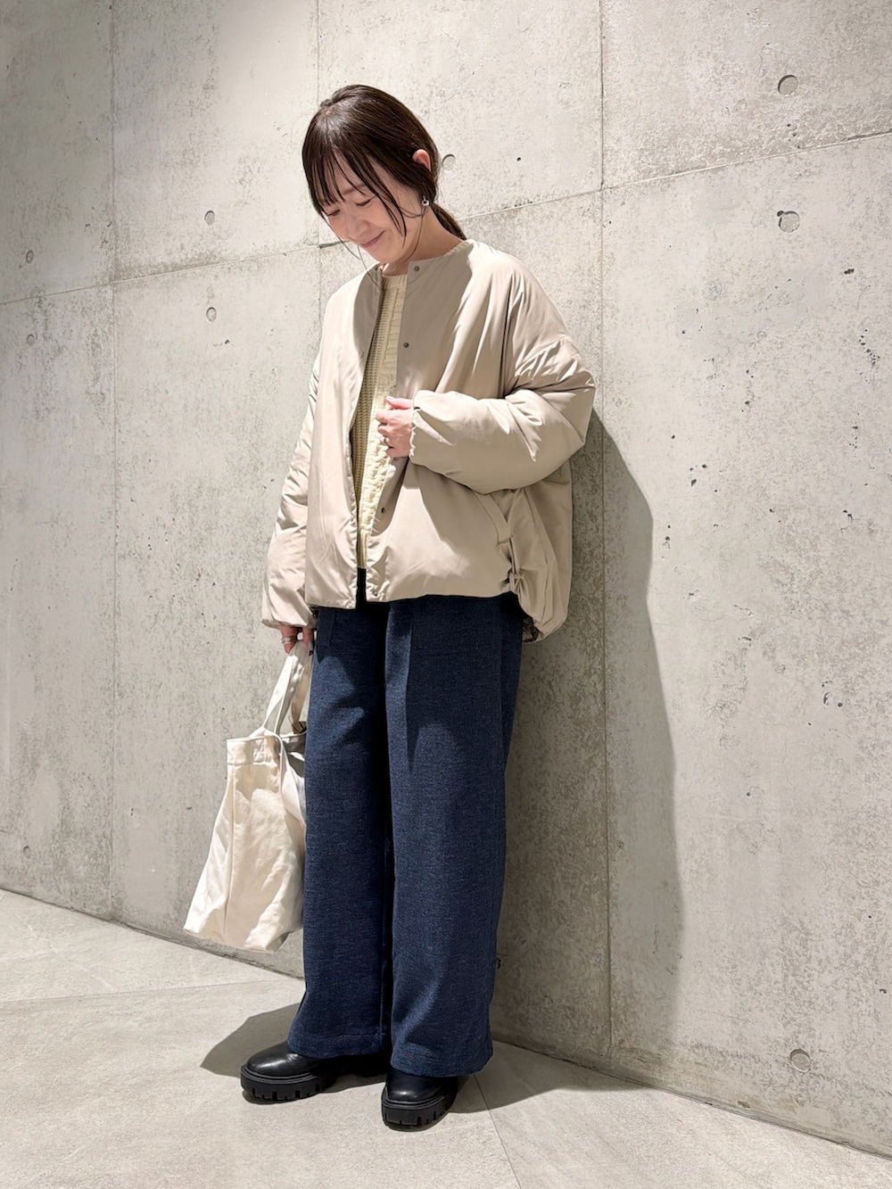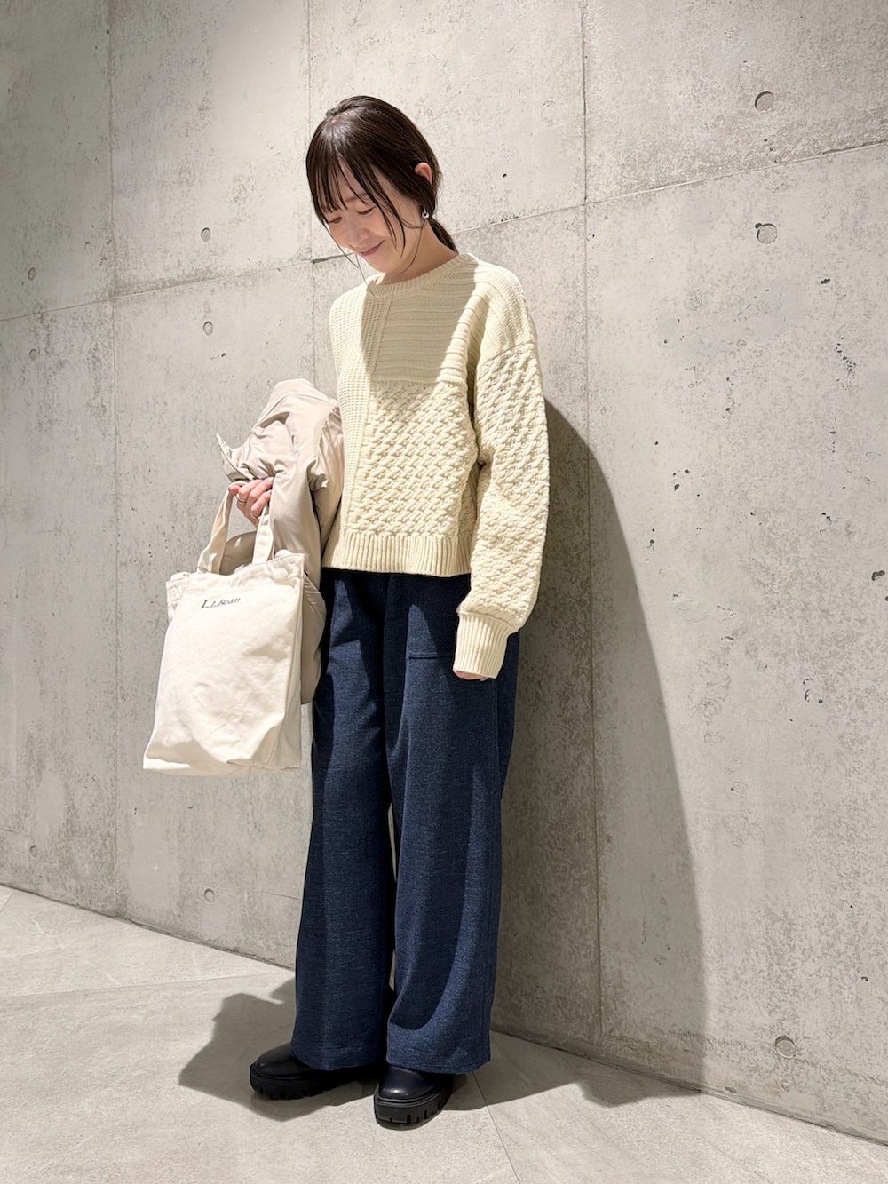 今回は、デニムライクなイージーパンツと合わせた、大人カジュアルコーディネートです。