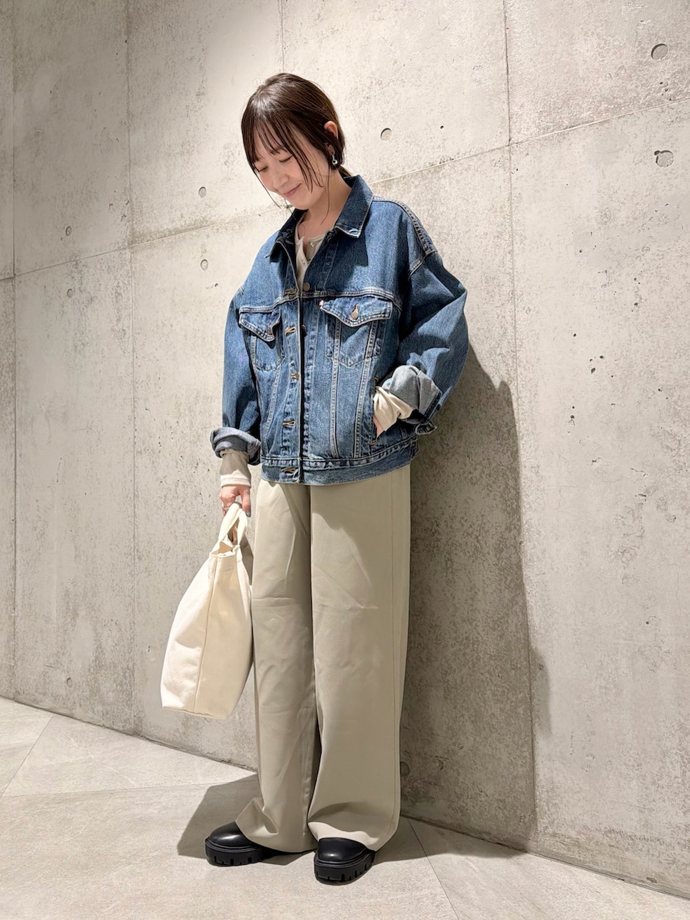 今回は、落ち感のある生地が特徴的なイージーパンツと合わせた、大人カジュアルコーディネート。