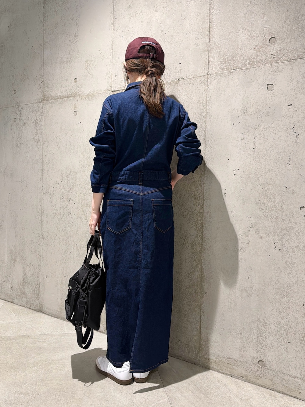程よい厚みの生地感と、体型を拾いすぎないIラインシルエットで、スッキリとした印象にしてくれます。