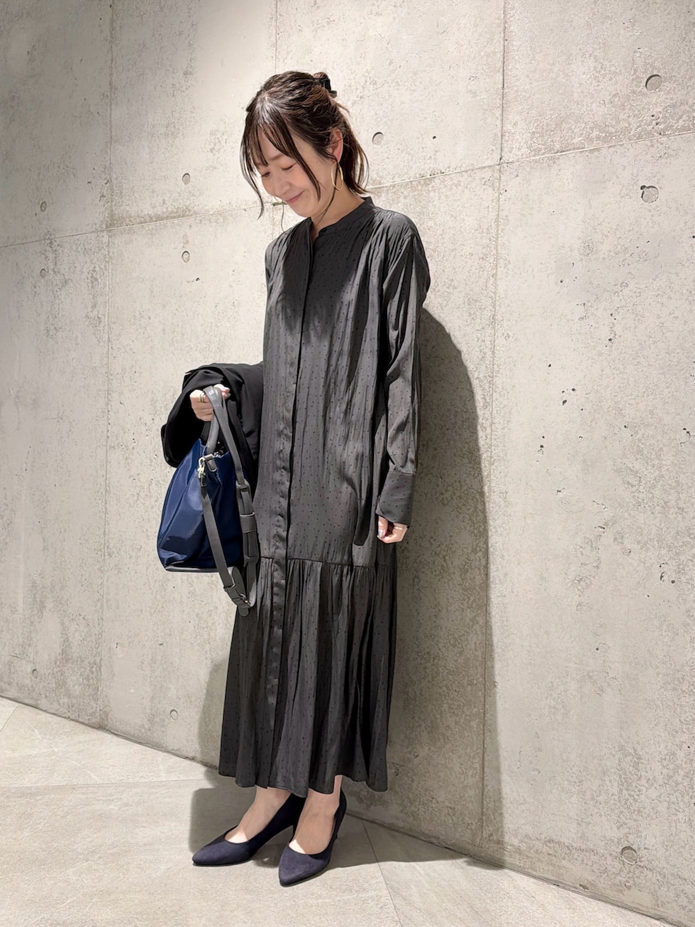 一枚でさらりと着るだけで様になるデザインで、パンプスやブーツを合わせるとシックな着こなしに。