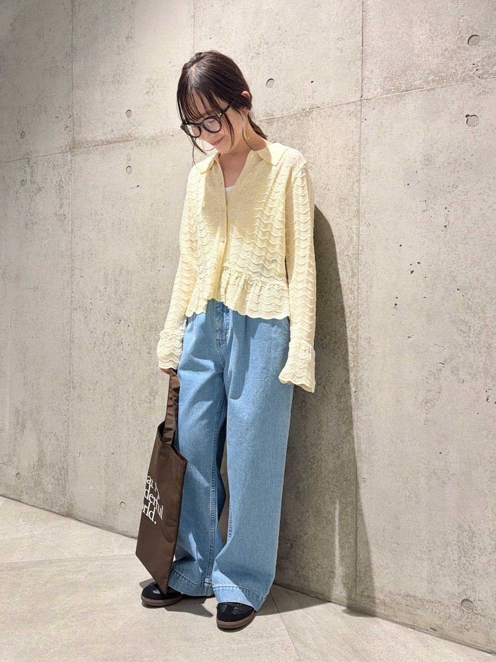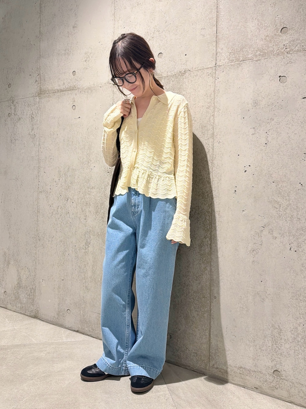今回は、タック入りのワイドデニムを合わせた、大人カジュアルコーディネートです。